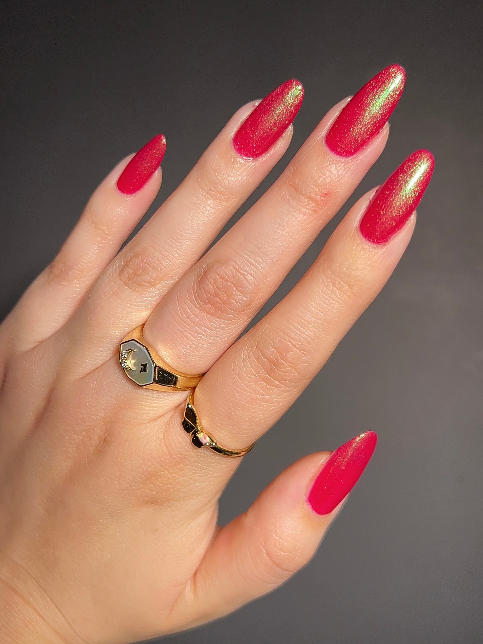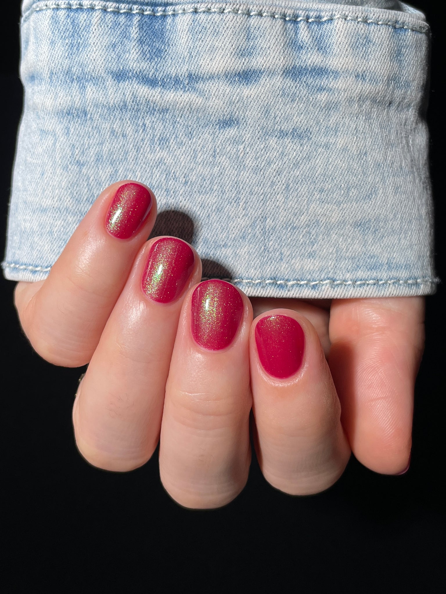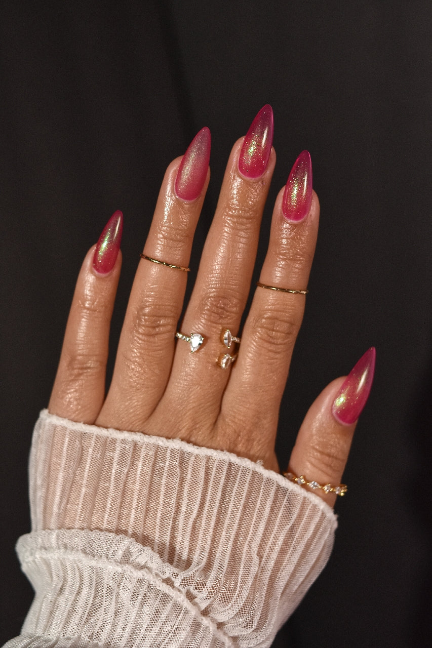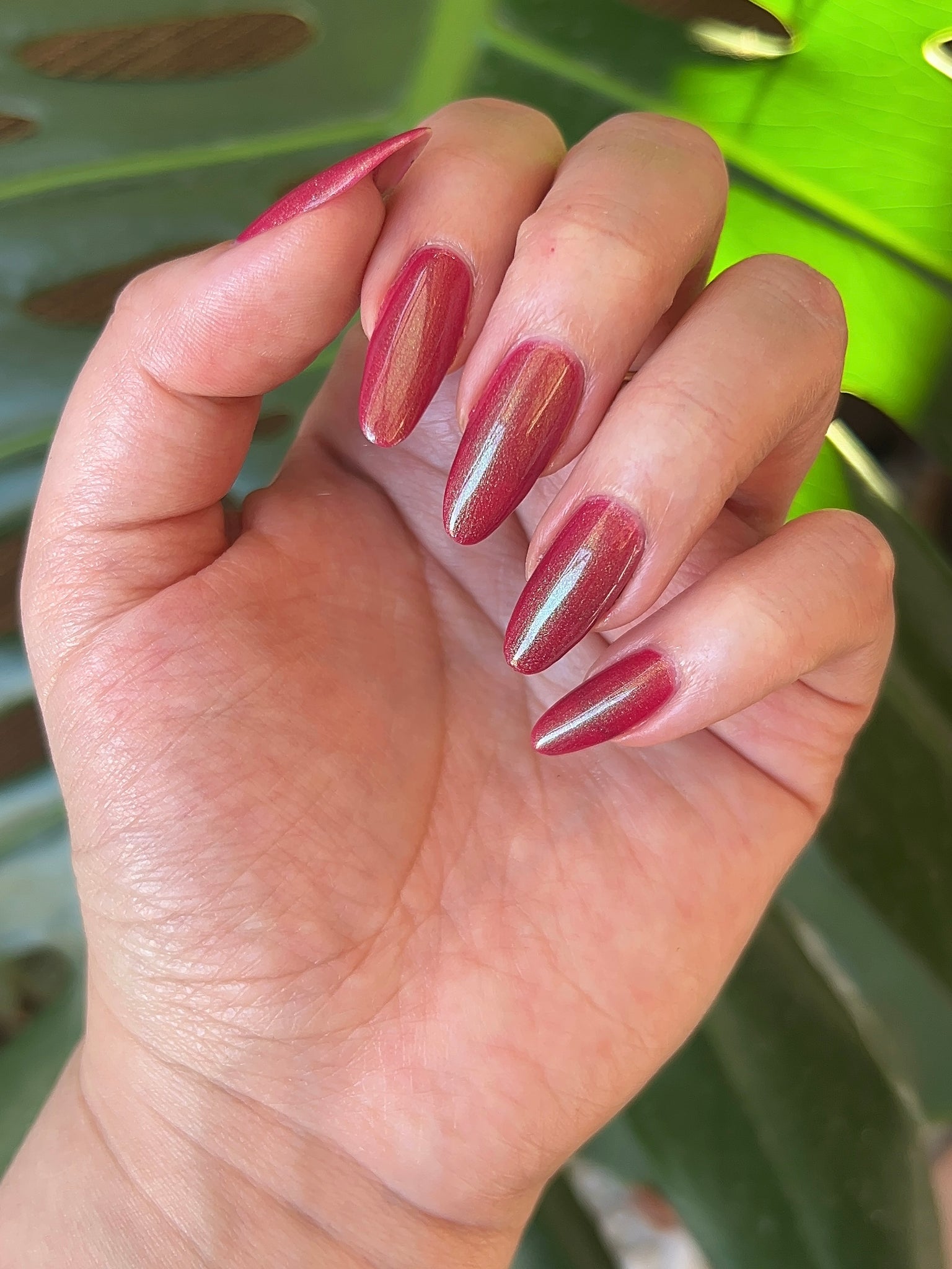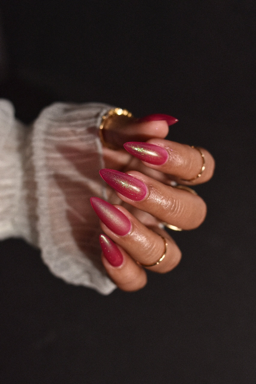 Description-Pinky red with green shimmers