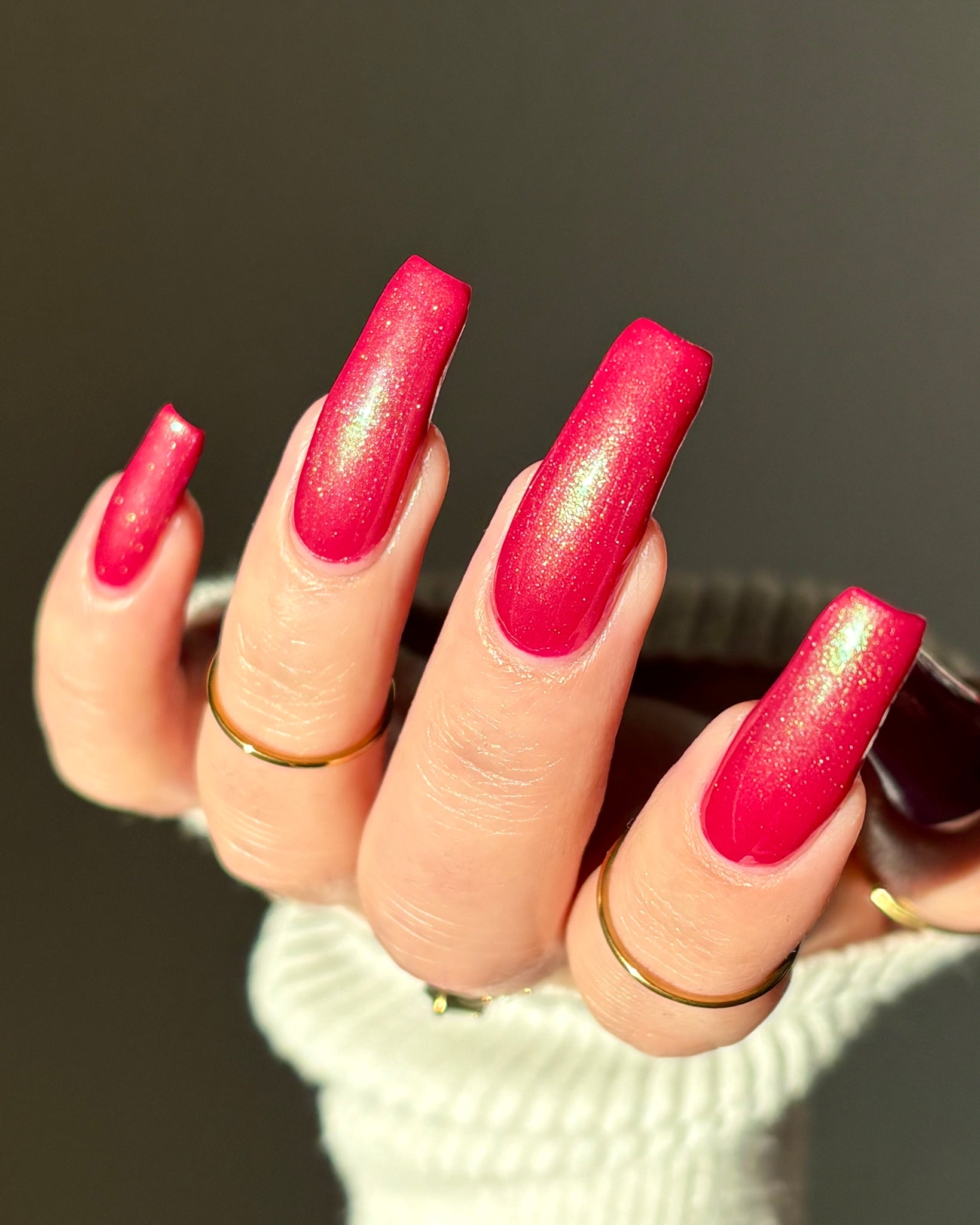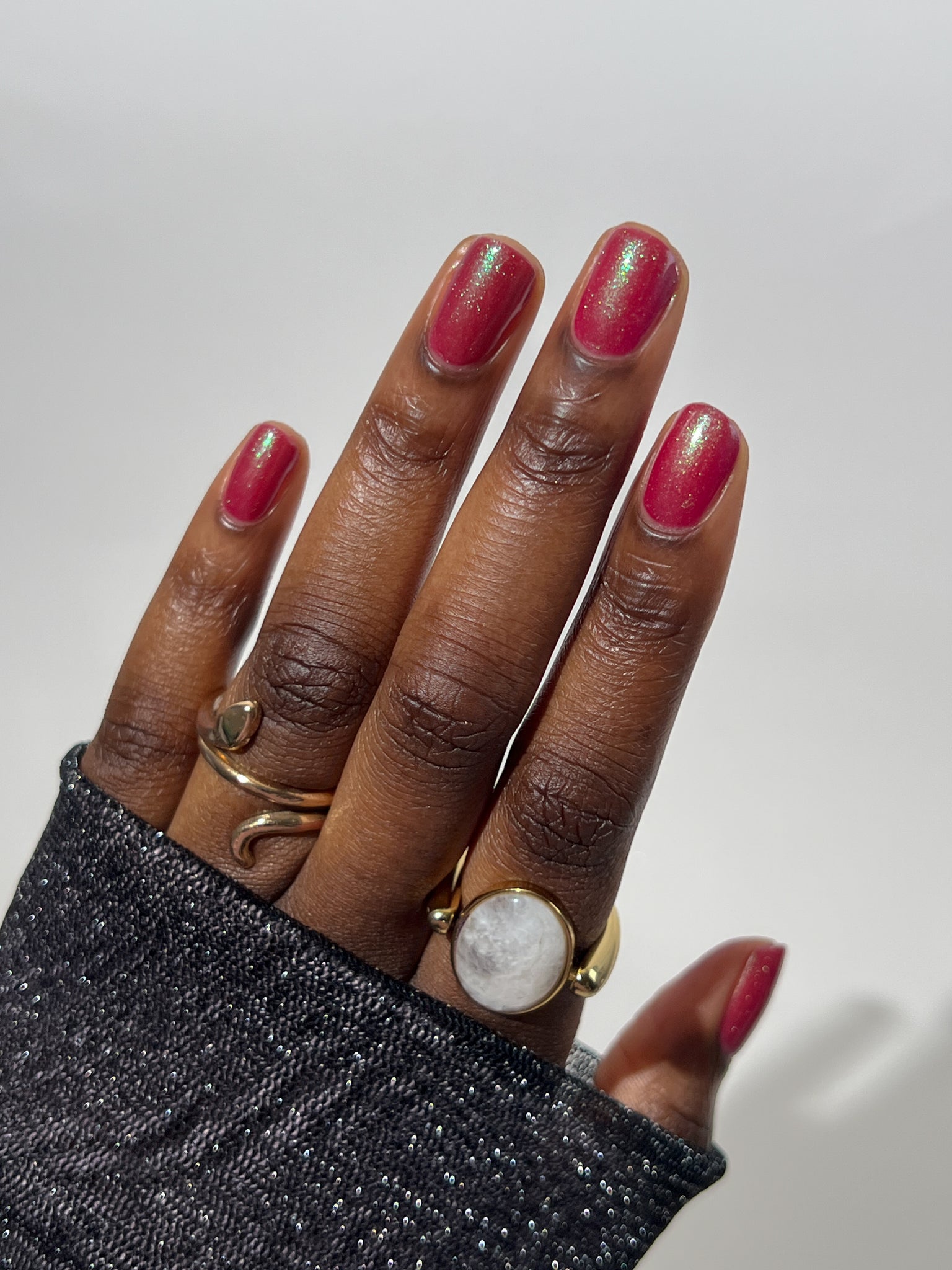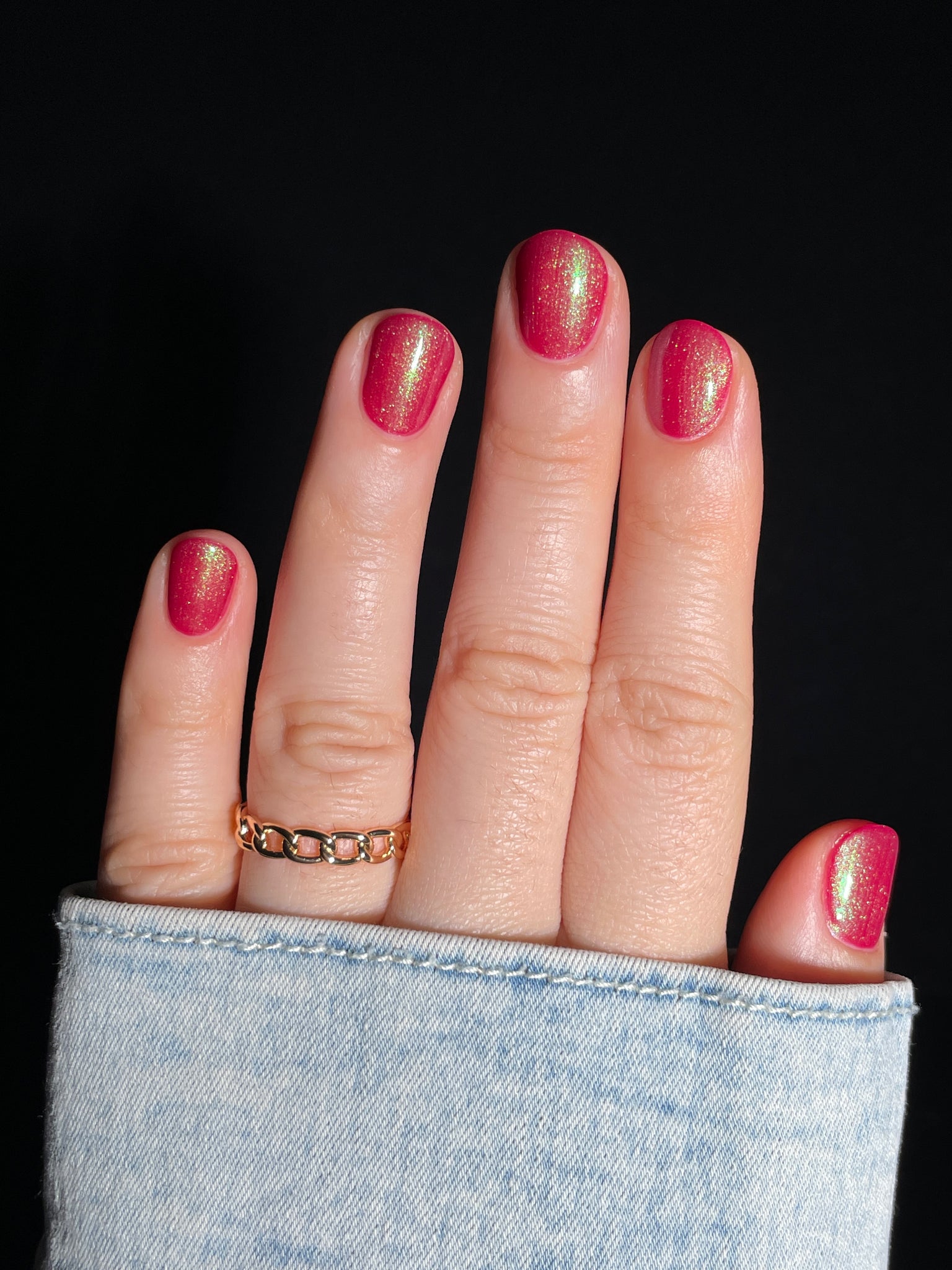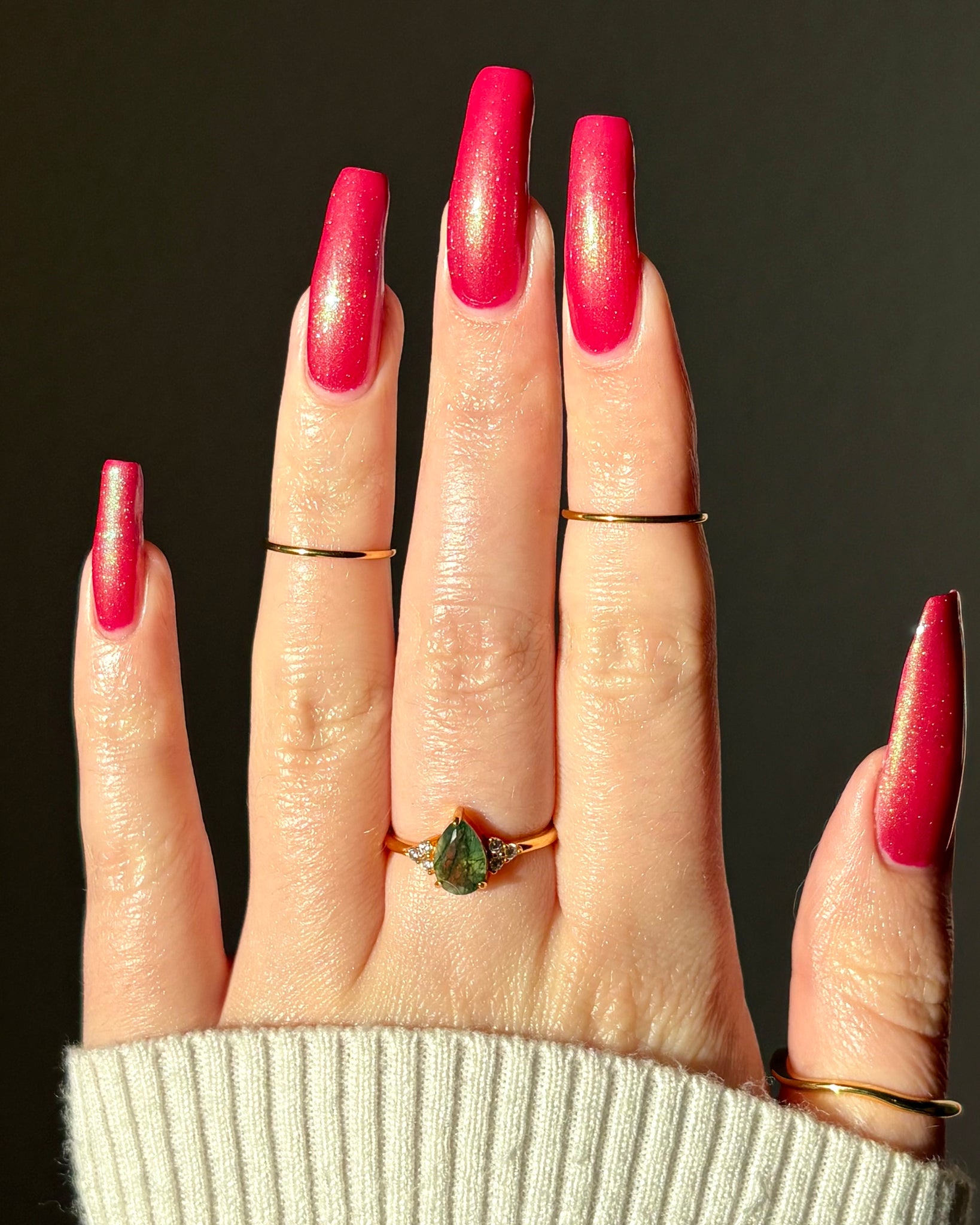 Description-Pinky red with green shimmers
