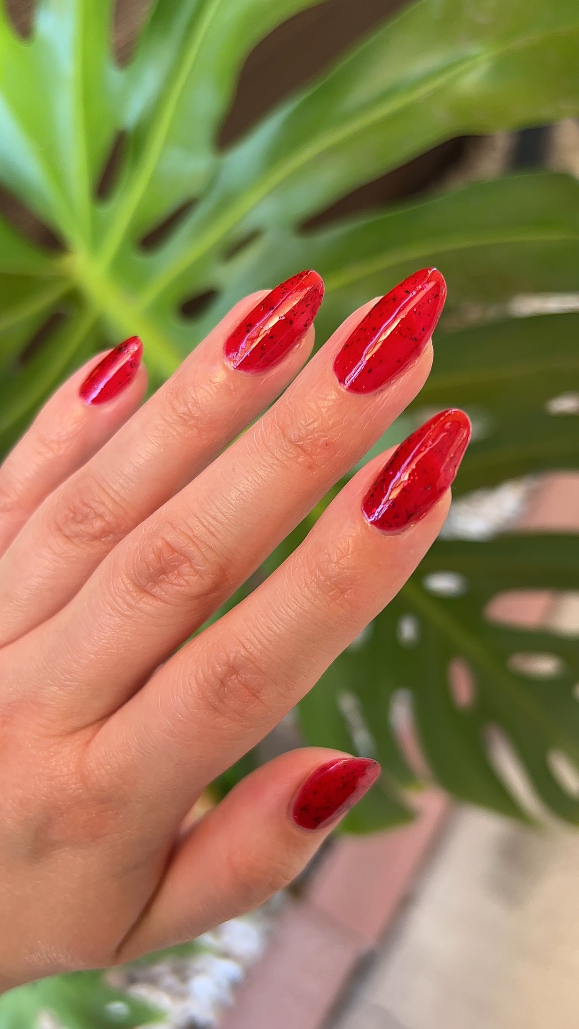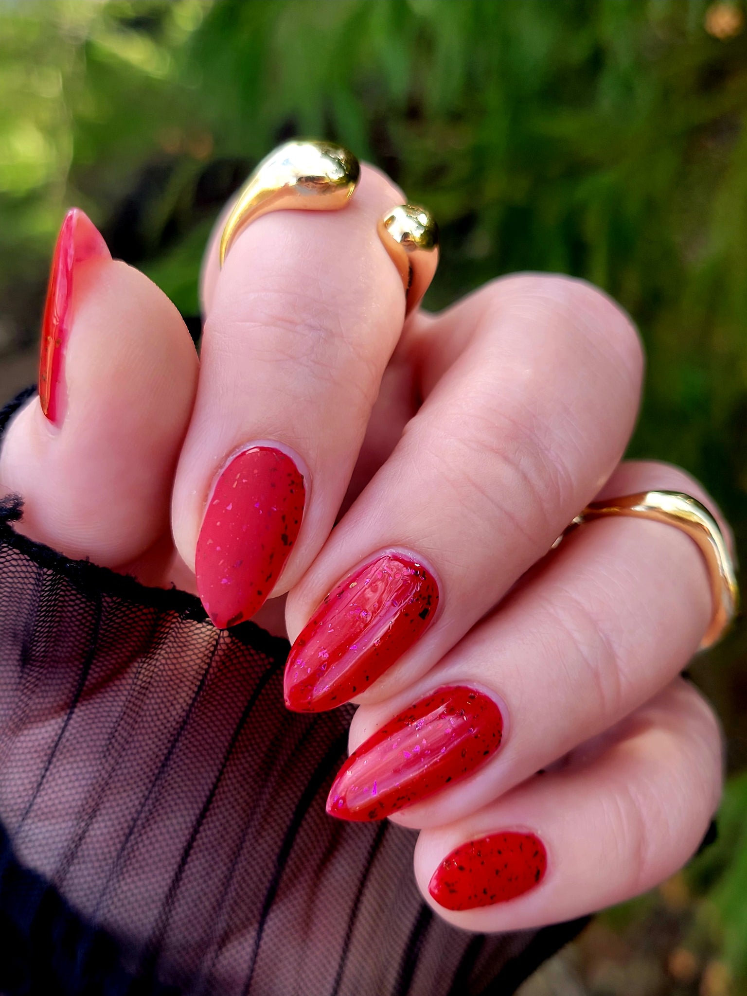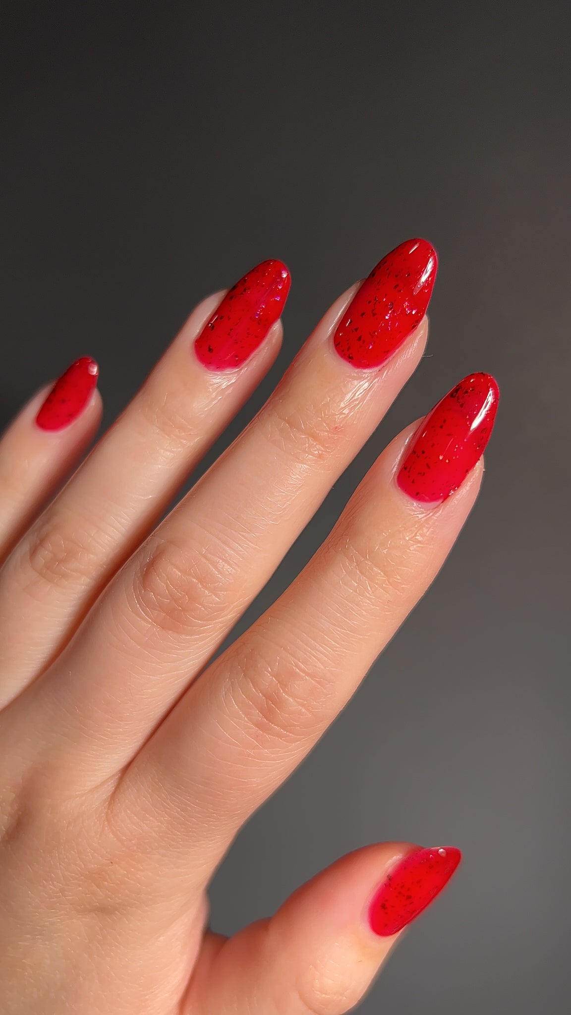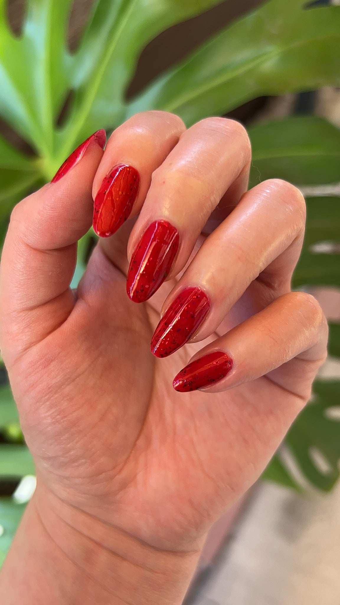 Description: Sound the alarms—Red Planet Panic has landed, and it's out-of-this-world stunning! This warm red jelly polish is packed with multichrome flakes that shift like a UFO in the night sky, flashing hints of green, gold, and magenta. It’s chaos, it’s beauty, it’s a red lover’s dream come true.