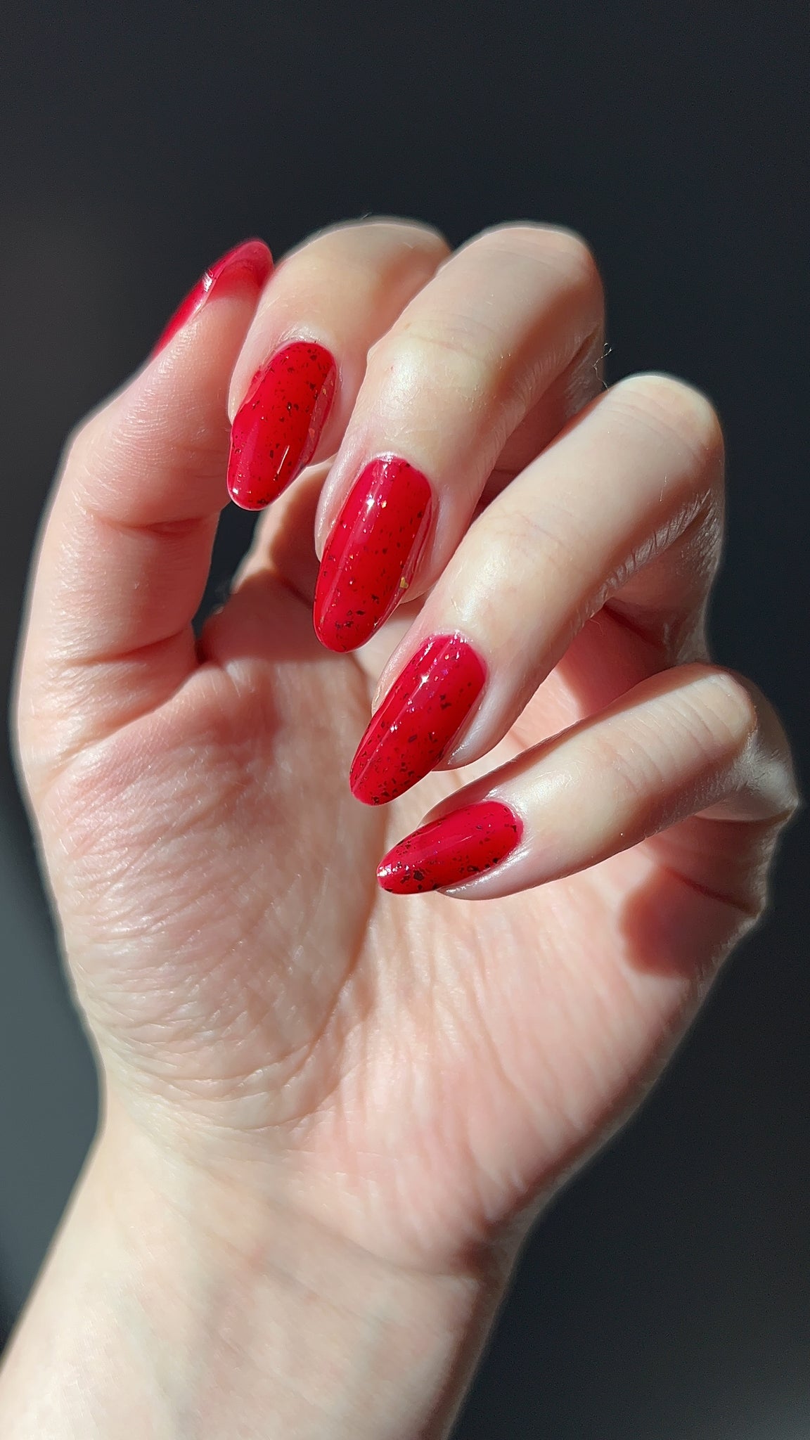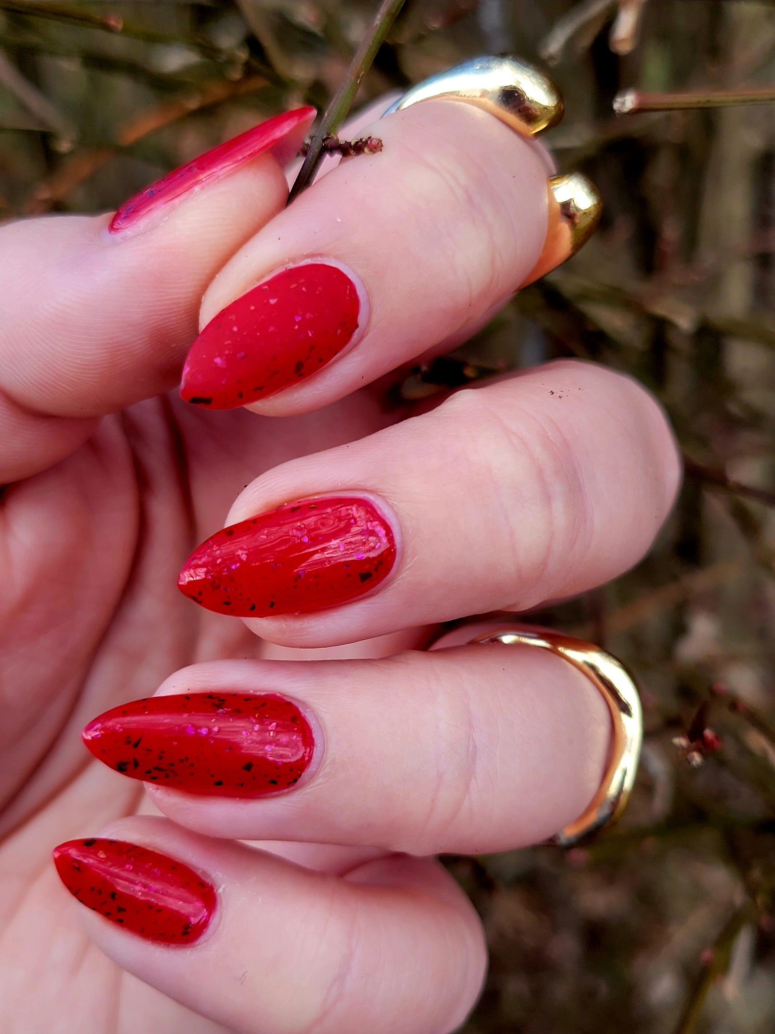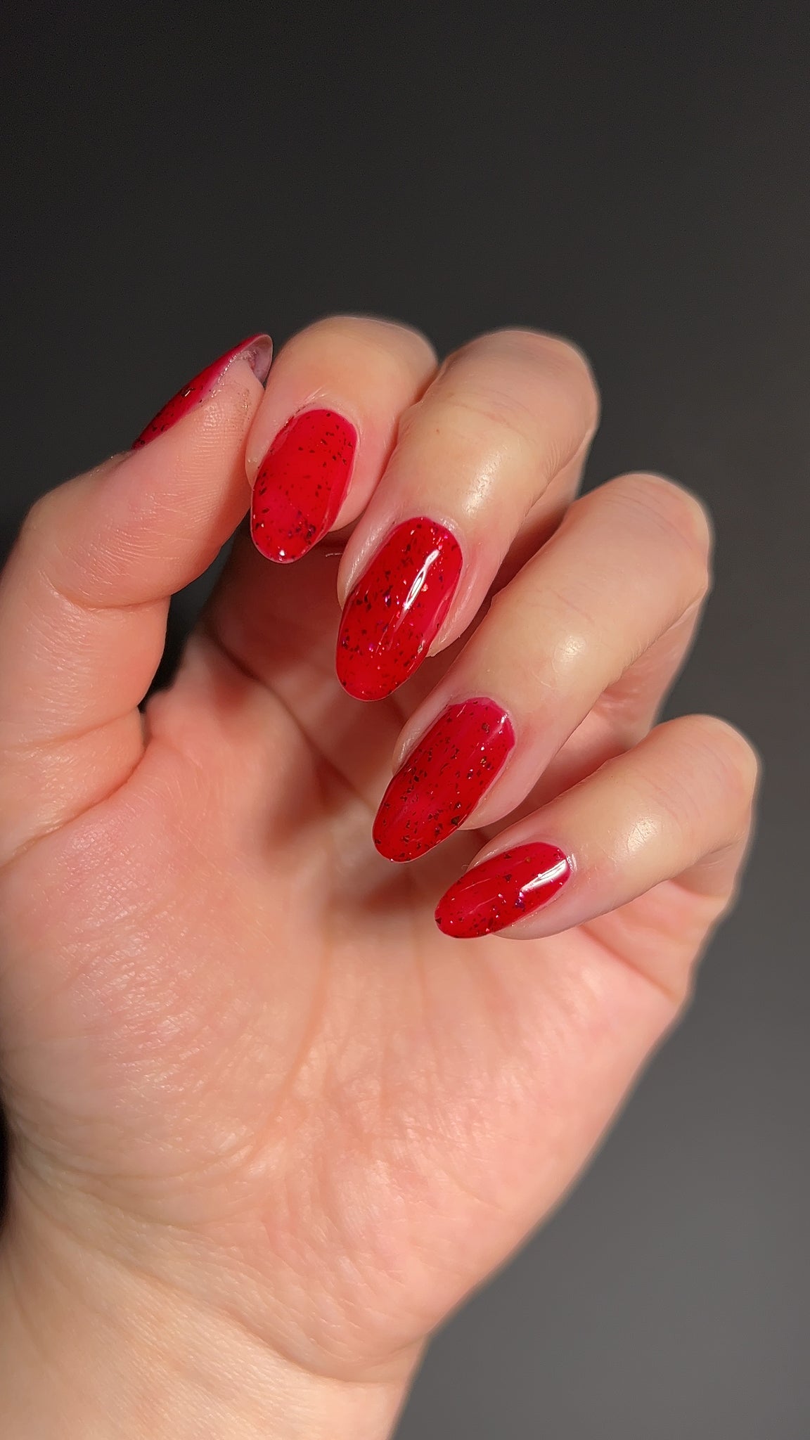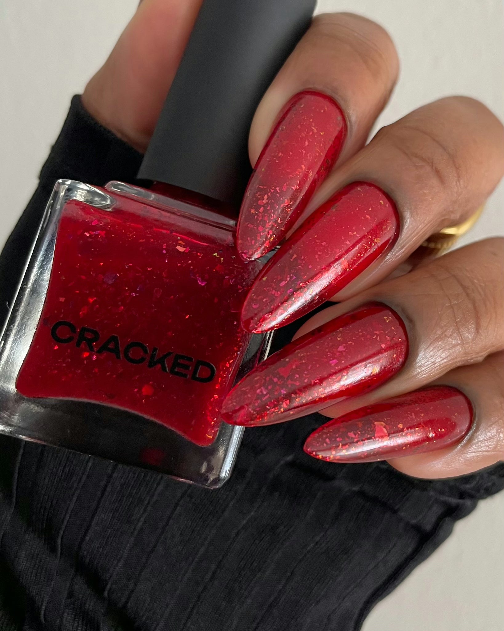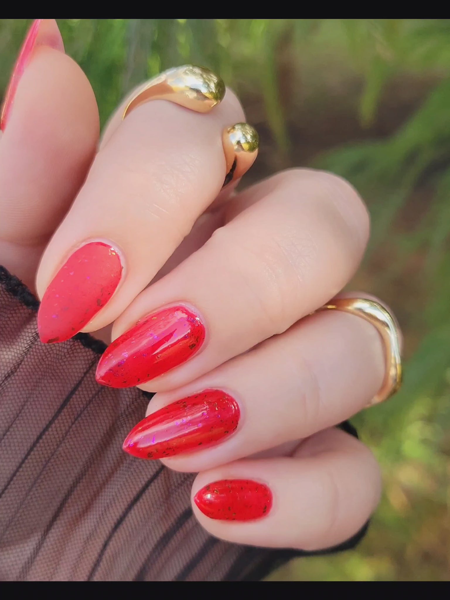 Description: Sound the alarms—Red Planet Panic has landed, and it's out-of-this-world stunning! This warm red jelly polish is packed with multichrome flakes that shift like a UFO in the night sky, flashing hints of green, gold, and magenta. It’s chaos, it’s beauty, it’s a red lover’s dream come true.