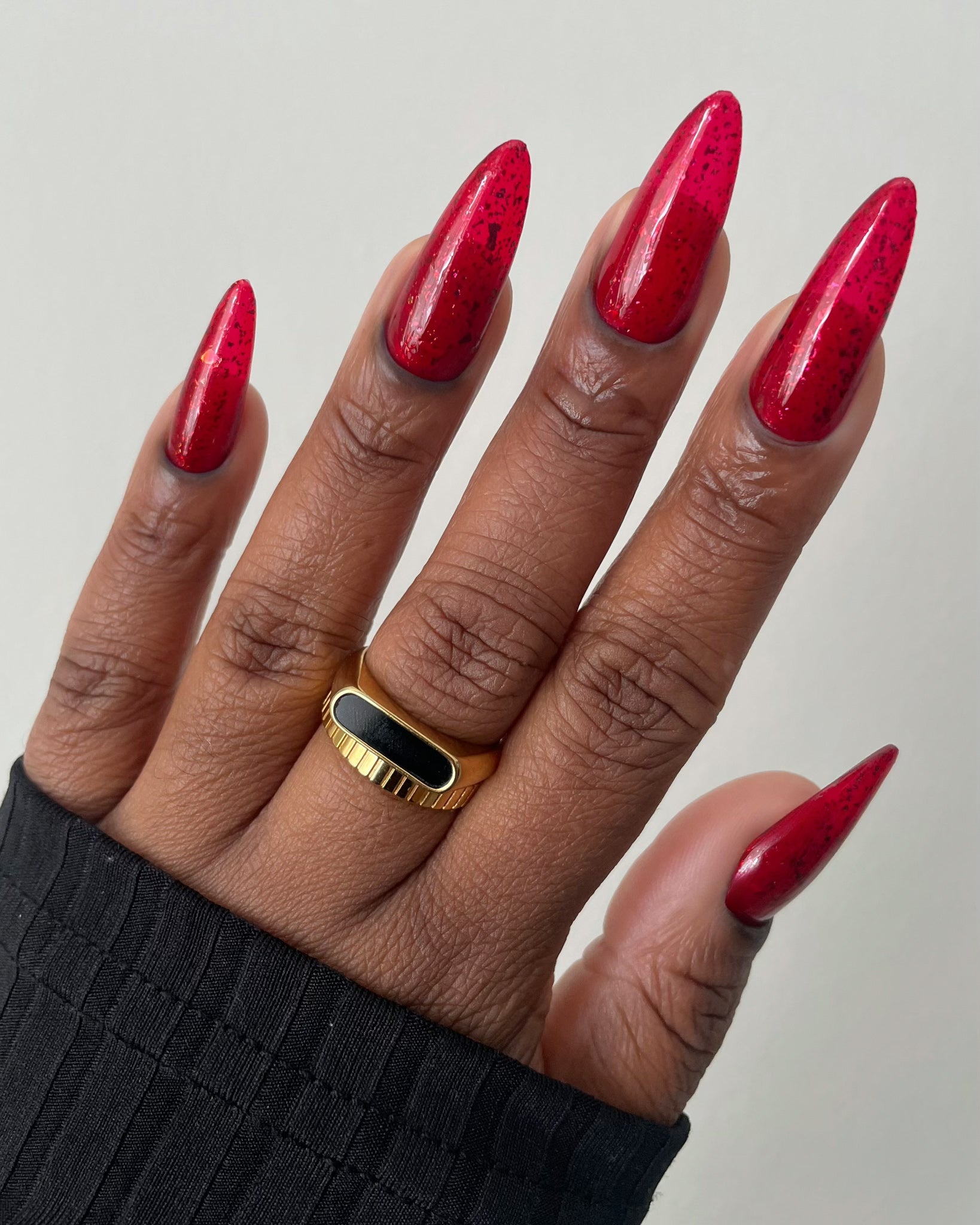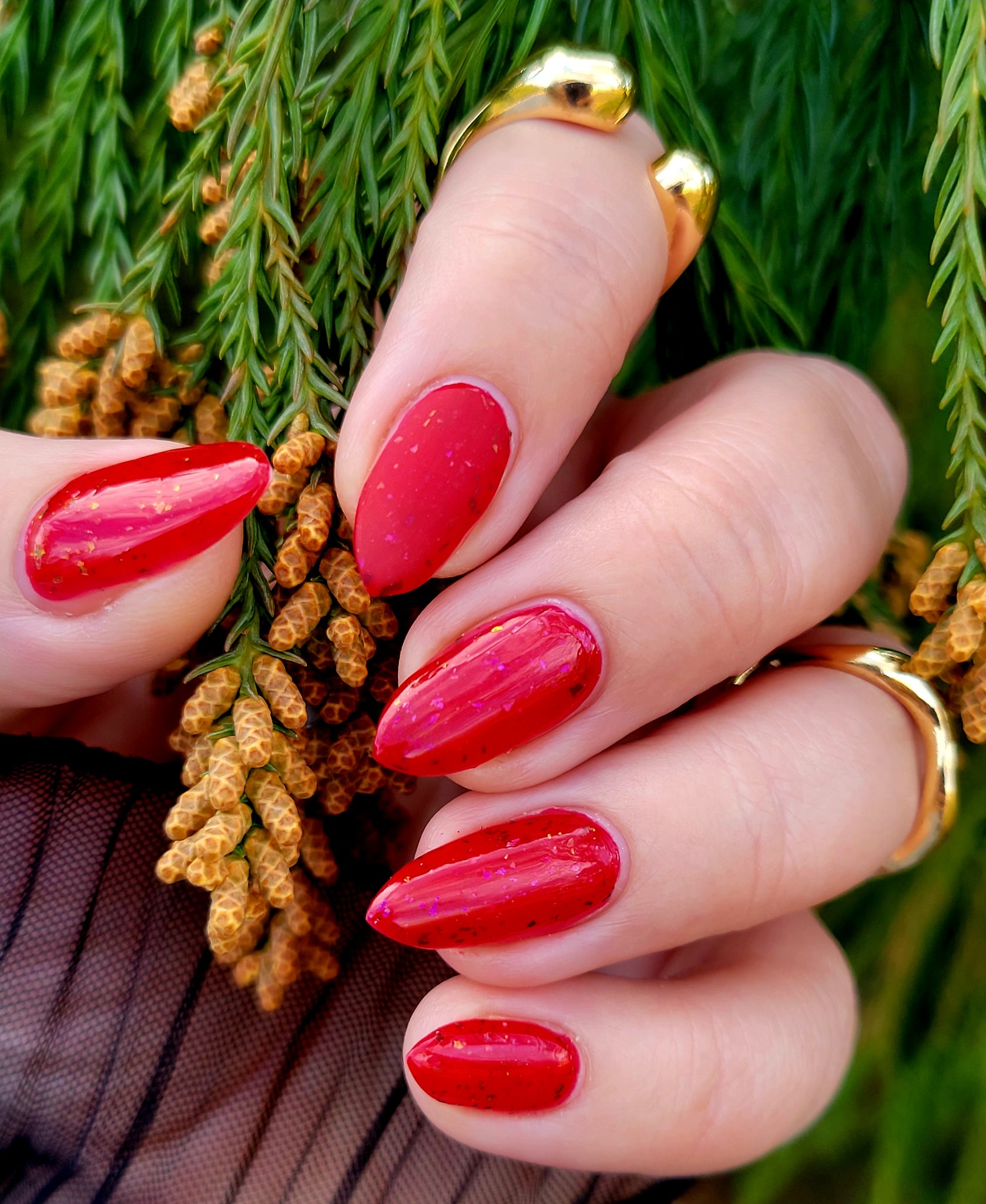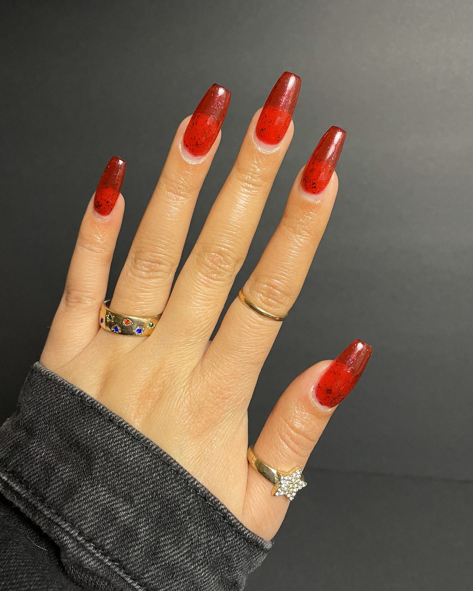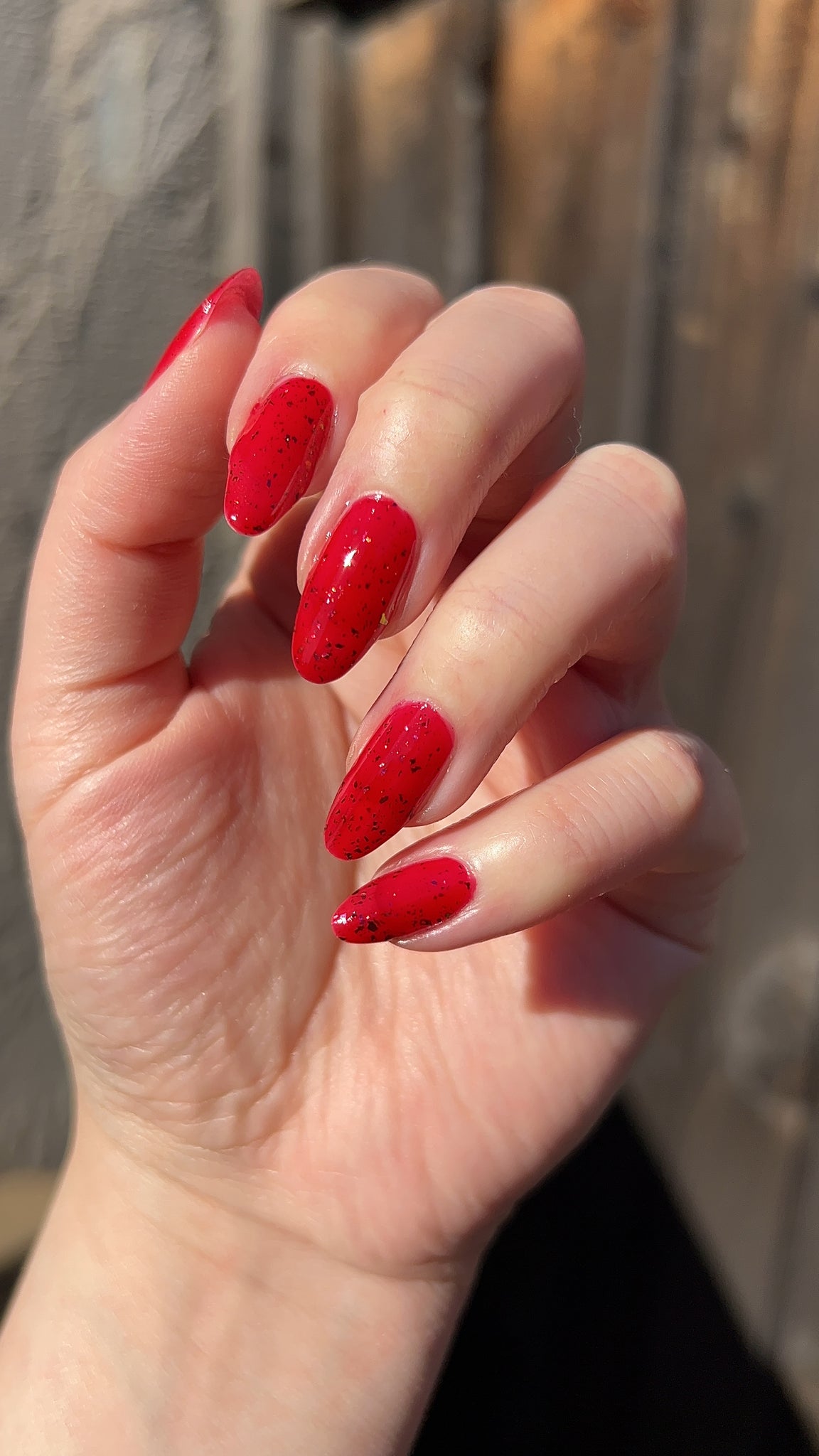 Description: Sound the alarms—Red Planet Panic has landed, and it's out-of-this-world stunning! This warm red jelly polish is packed with multichrome flakes that shift like a UFO in the night sky, flashing hints of green, gold, and magenta. It’s chaos, it’s beauty, it’s a red lover’s dream come true.