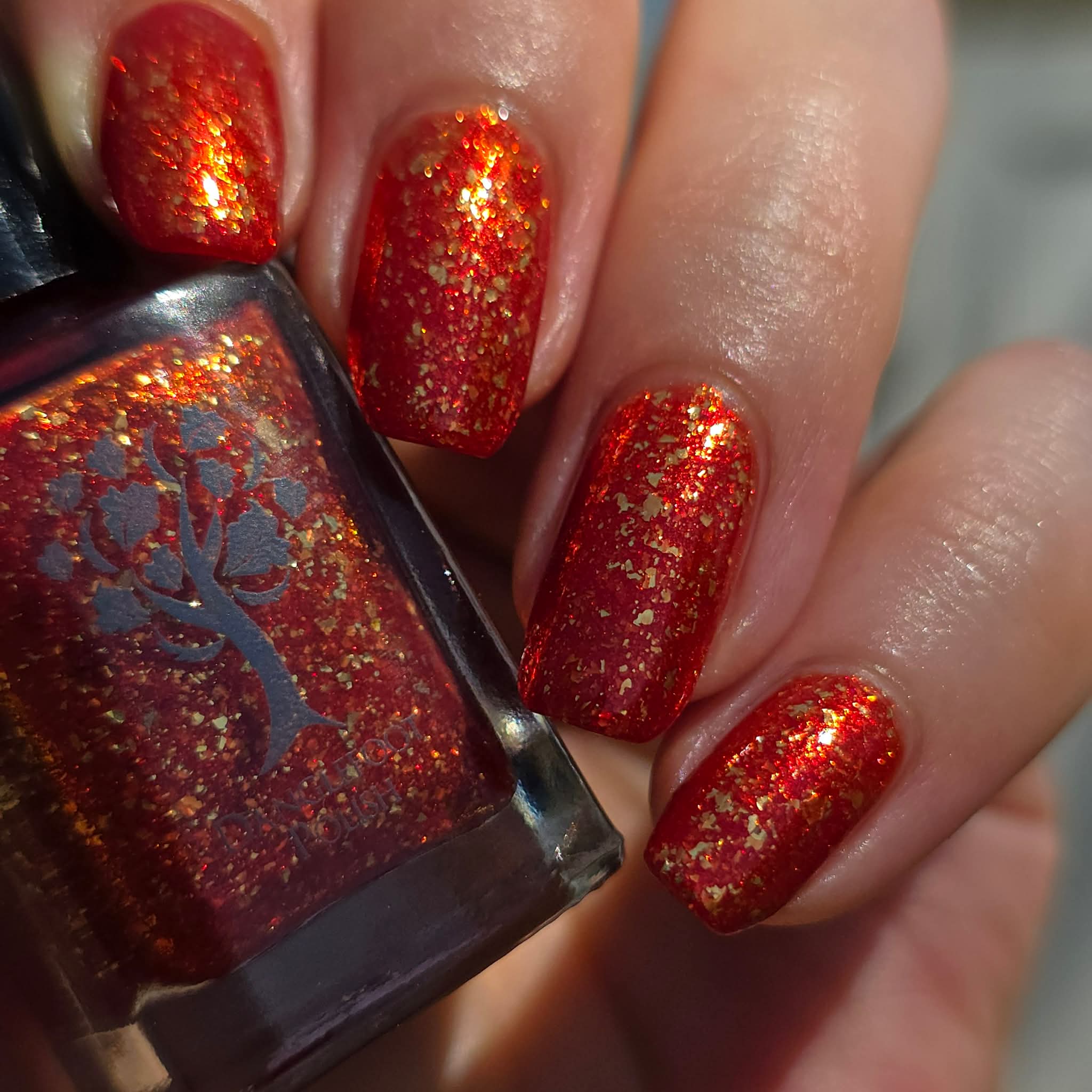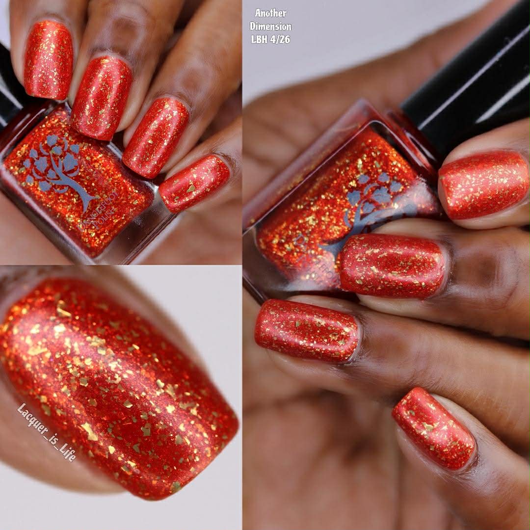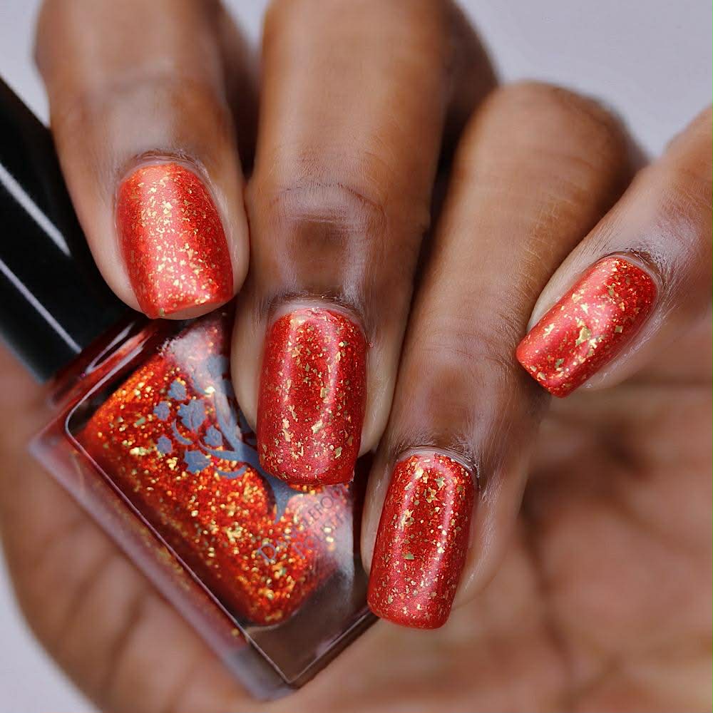 Description: Orange with gold flakes and a soft gold/orange shimmer.