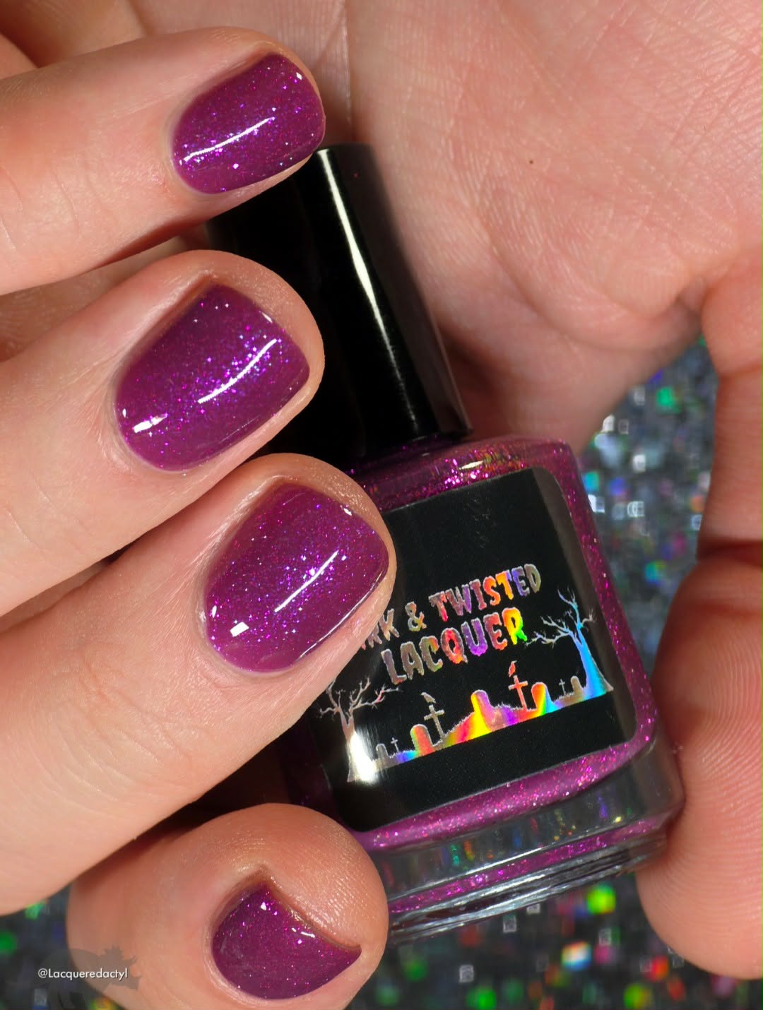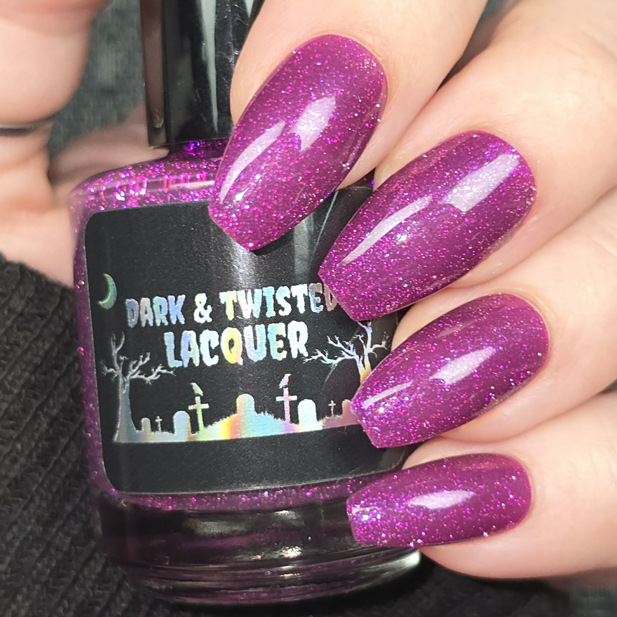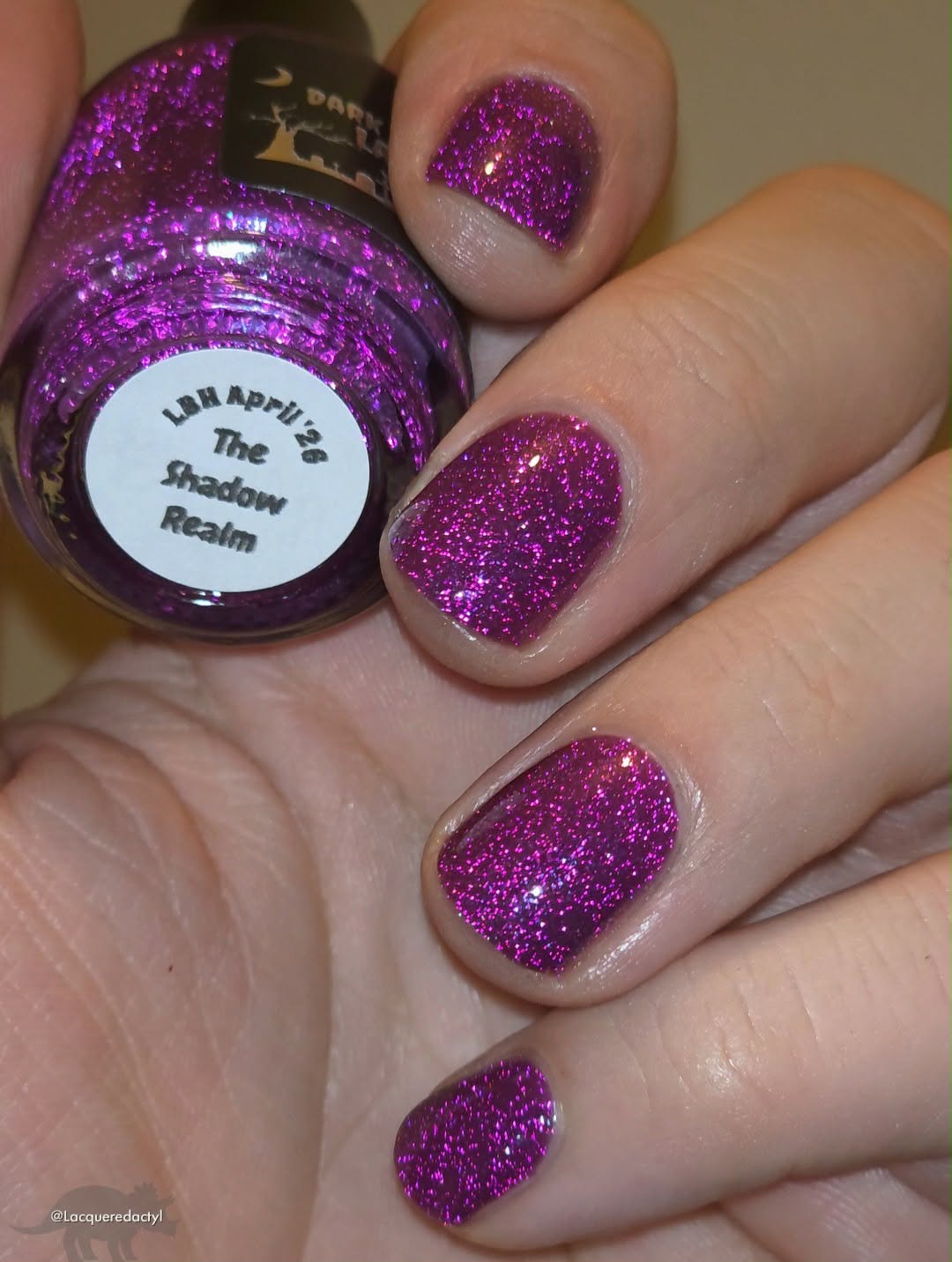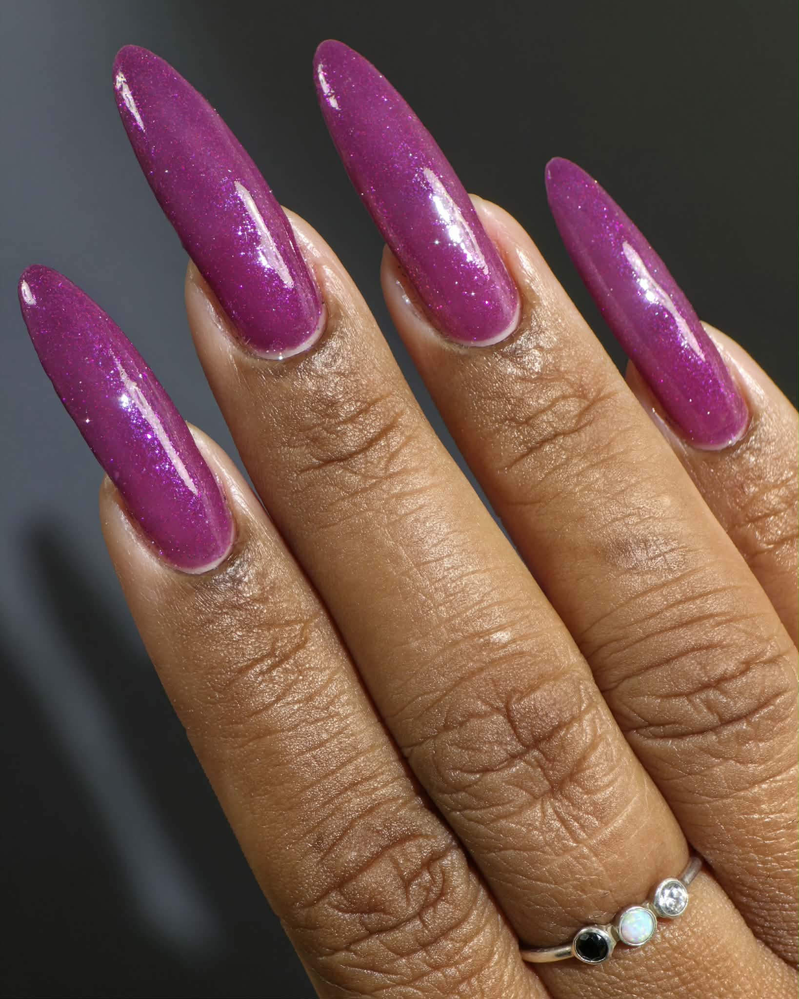 Description: This polish is a plum base full of reflective glitter and shimmer pink/purple.