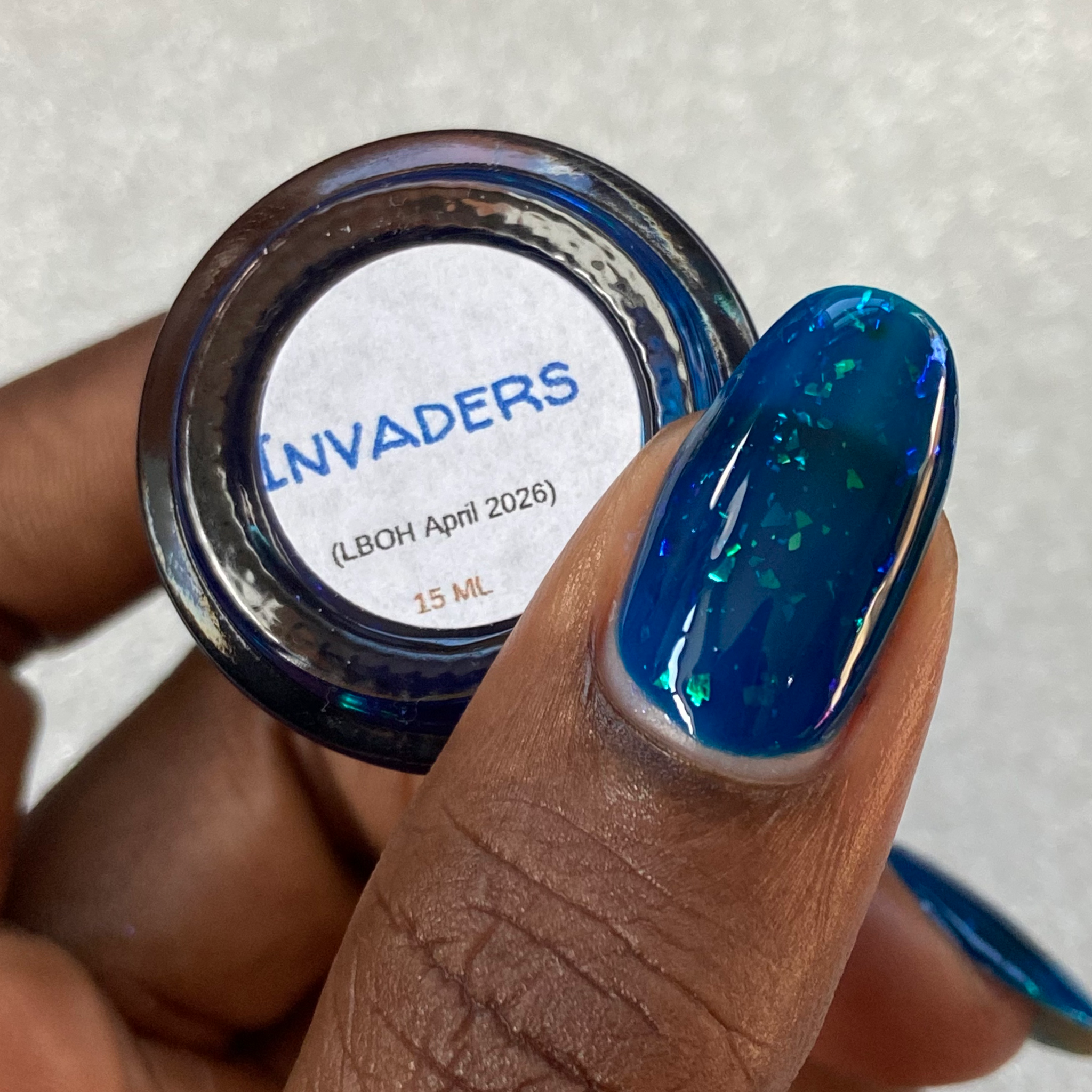 Description: Invaders - this is an iron blue jelly base with iridescent flakies