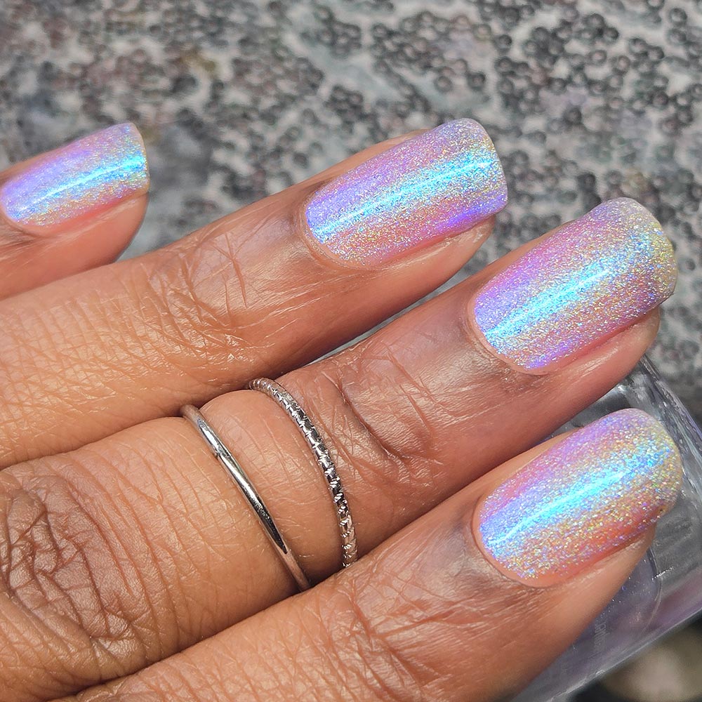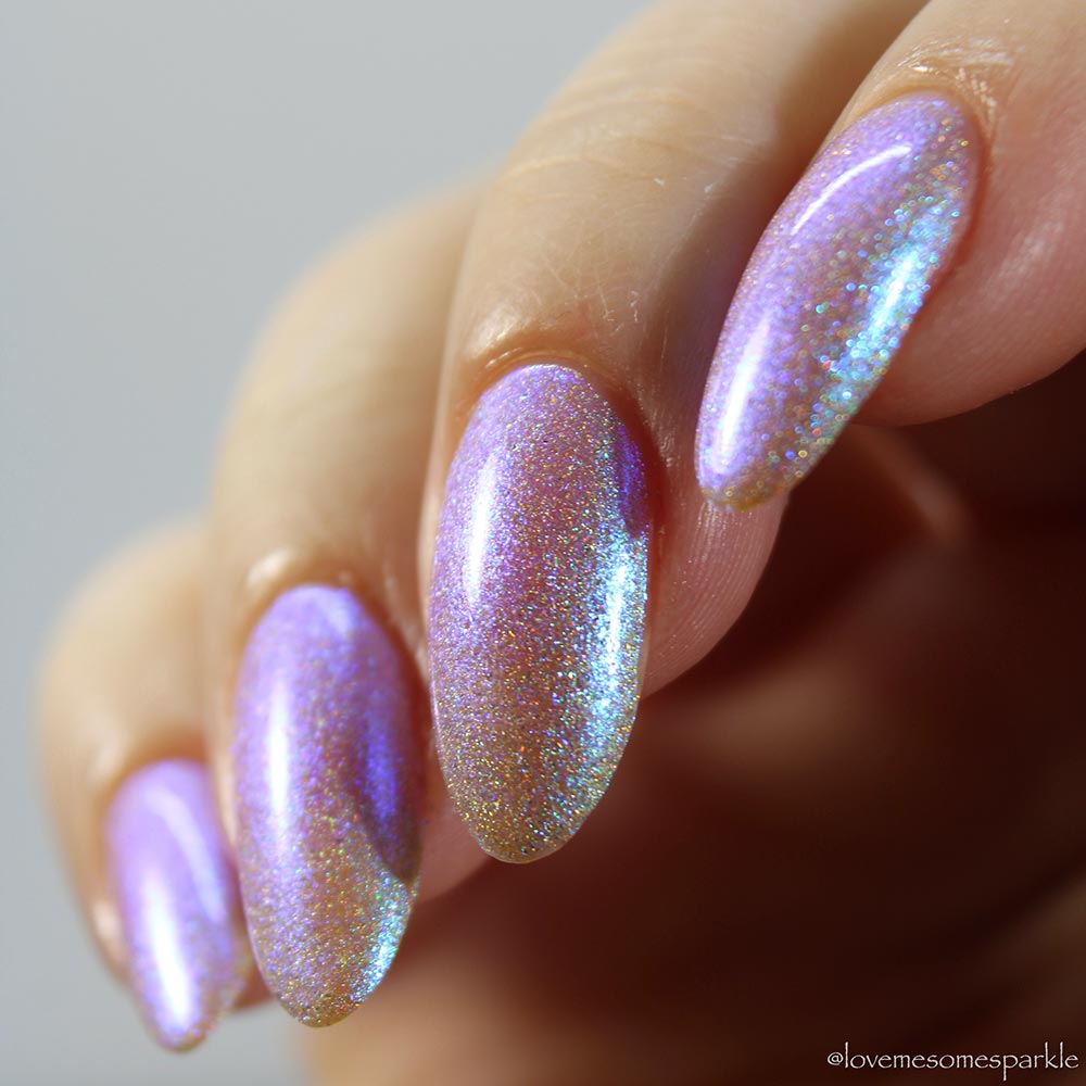 Description: Lavender holographic base with glowy blue/purple shifty shimmer