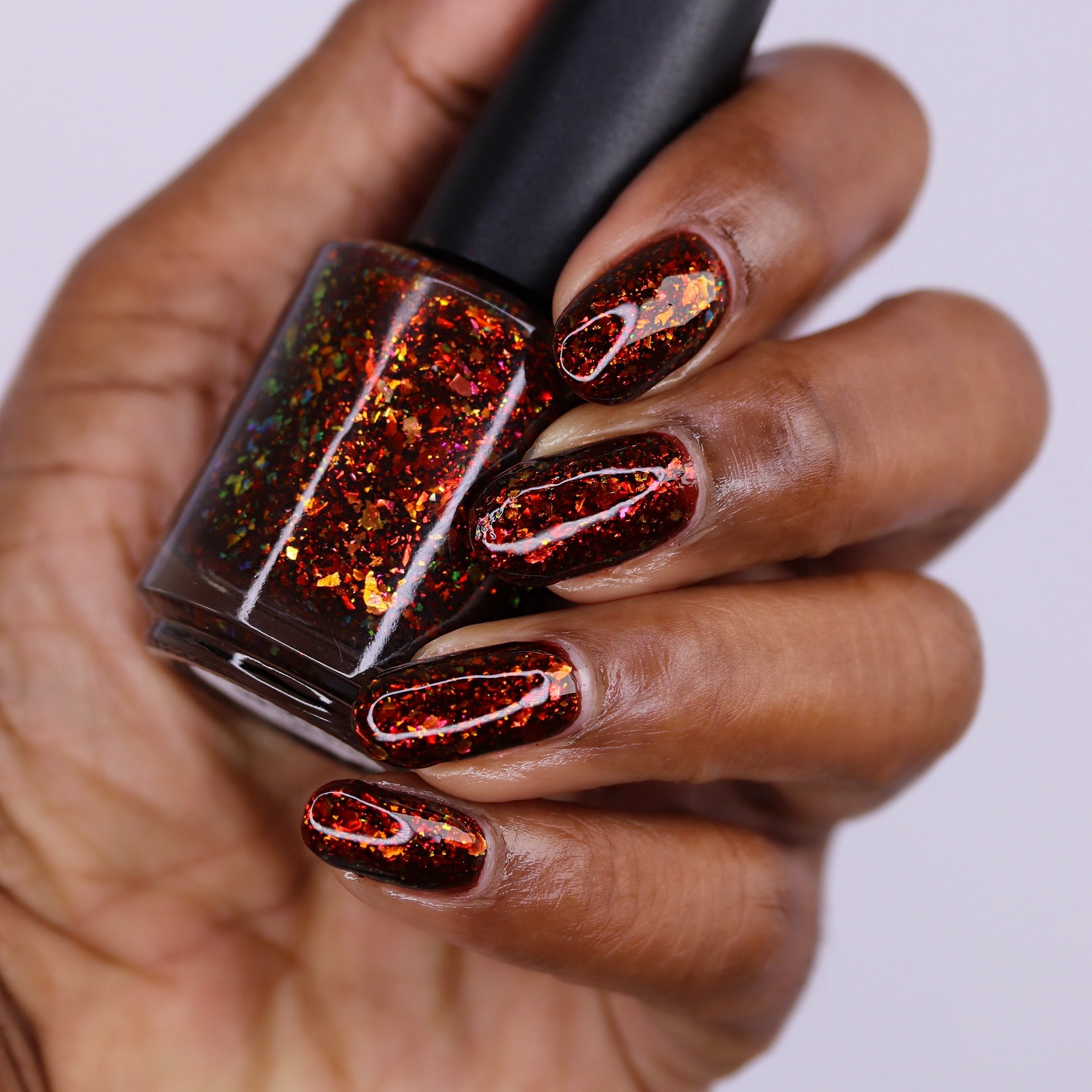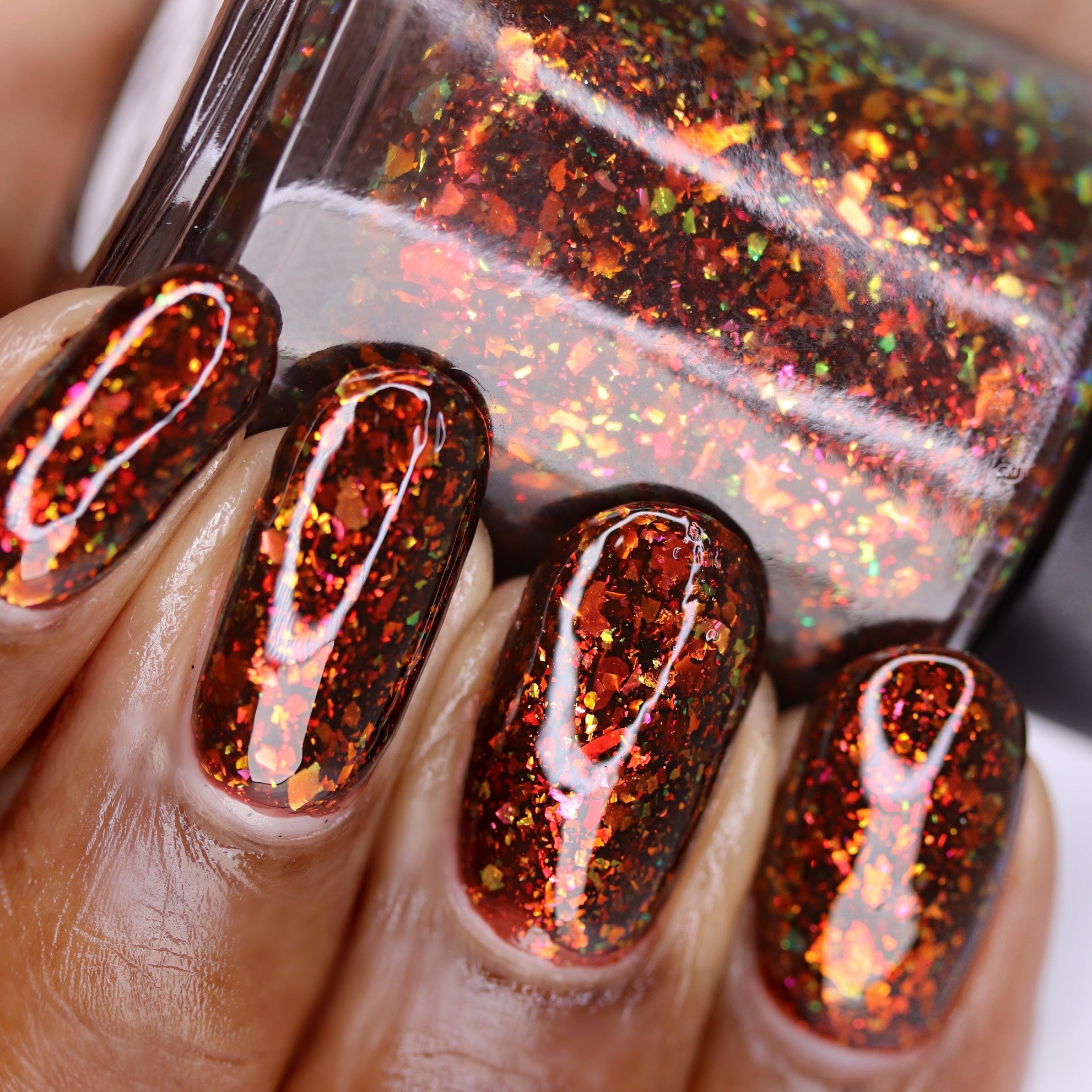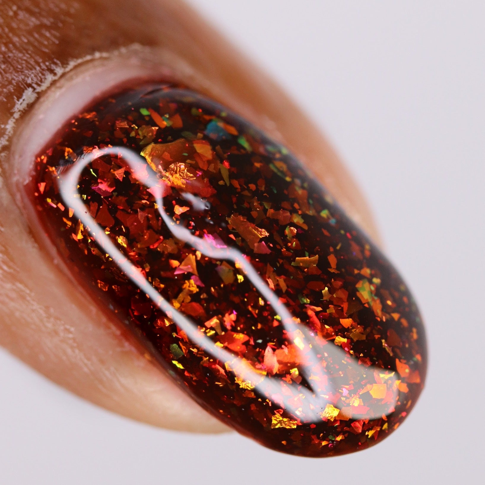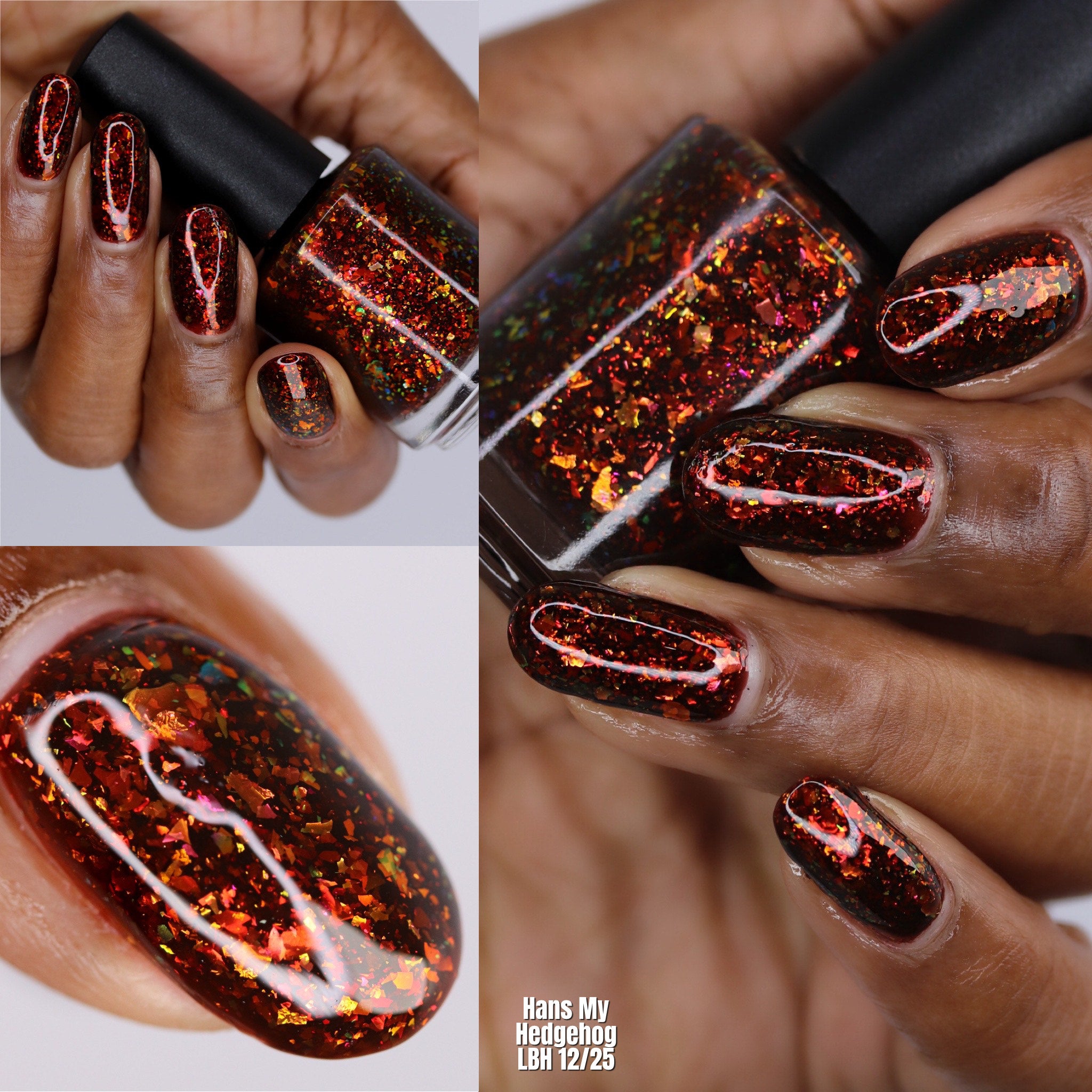 Hans My Hedgehog is a brown jelly with fiery red to orange flakes and copper to gold to green flakes.