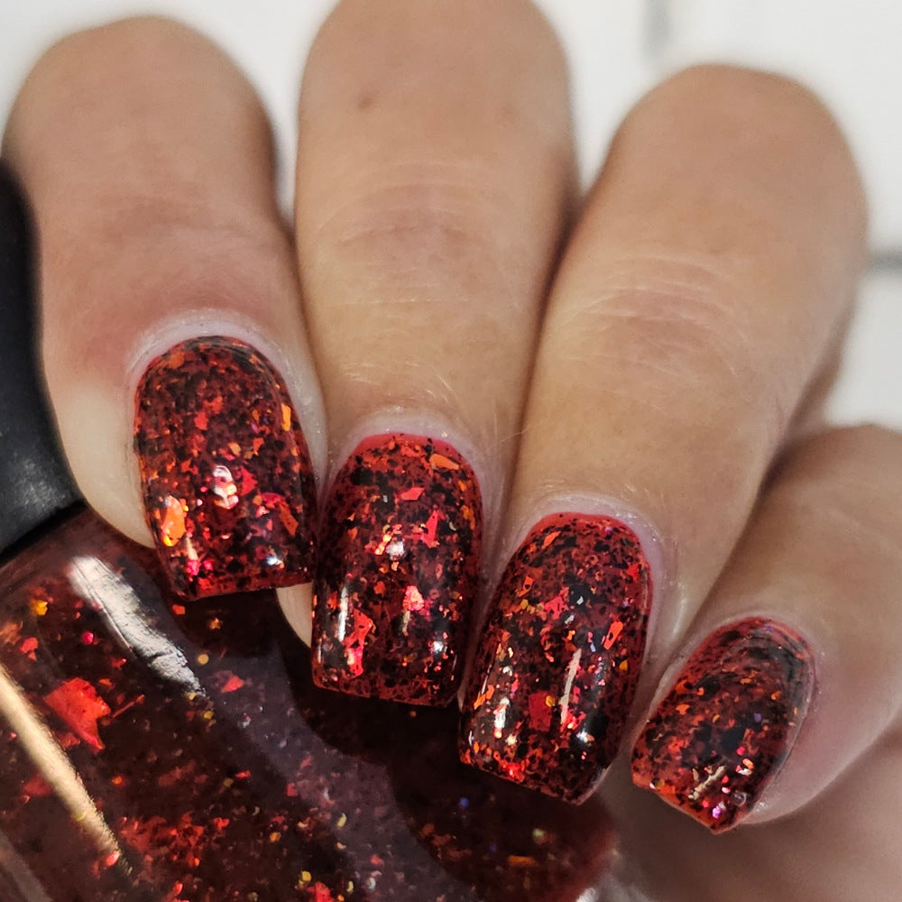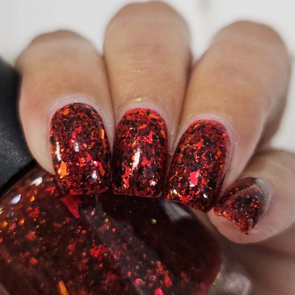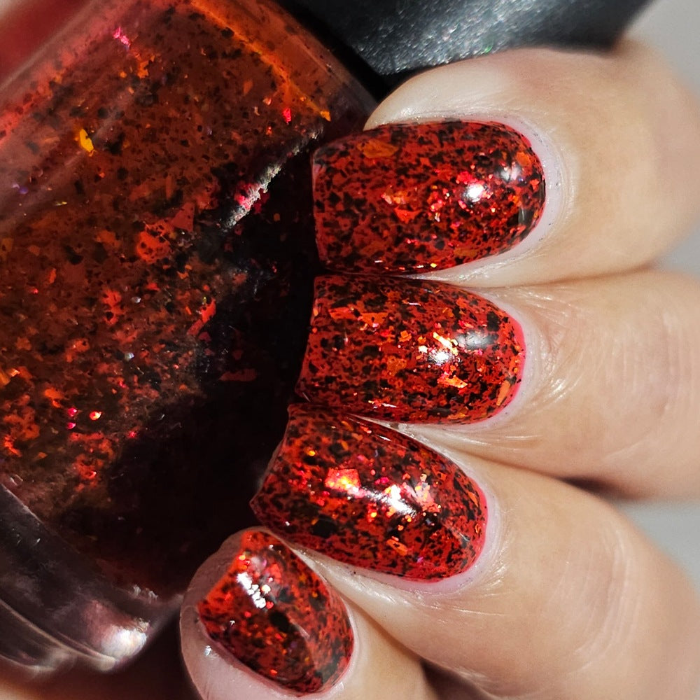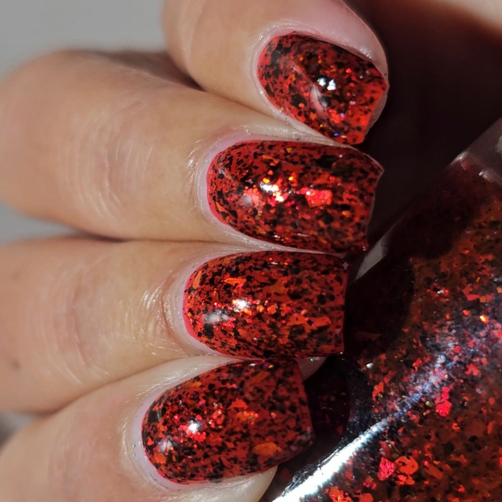 The Soldier and Death is a red jelly with red to orange flakes and black microflakes.
