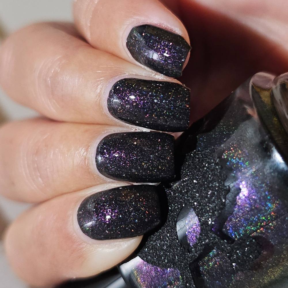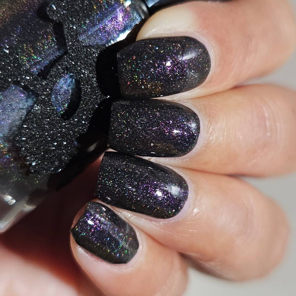 Description: Dark fog grey with a purple shimmer and scattered holo