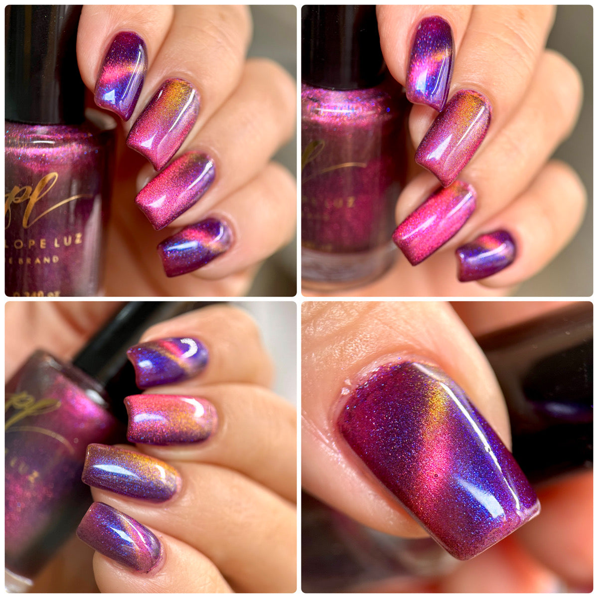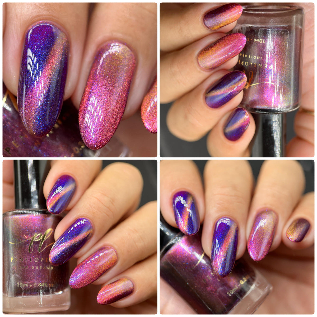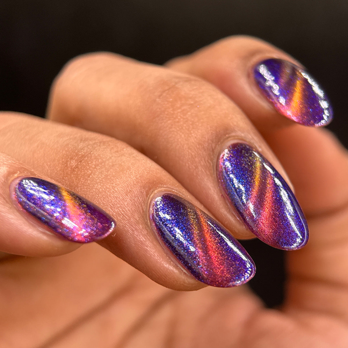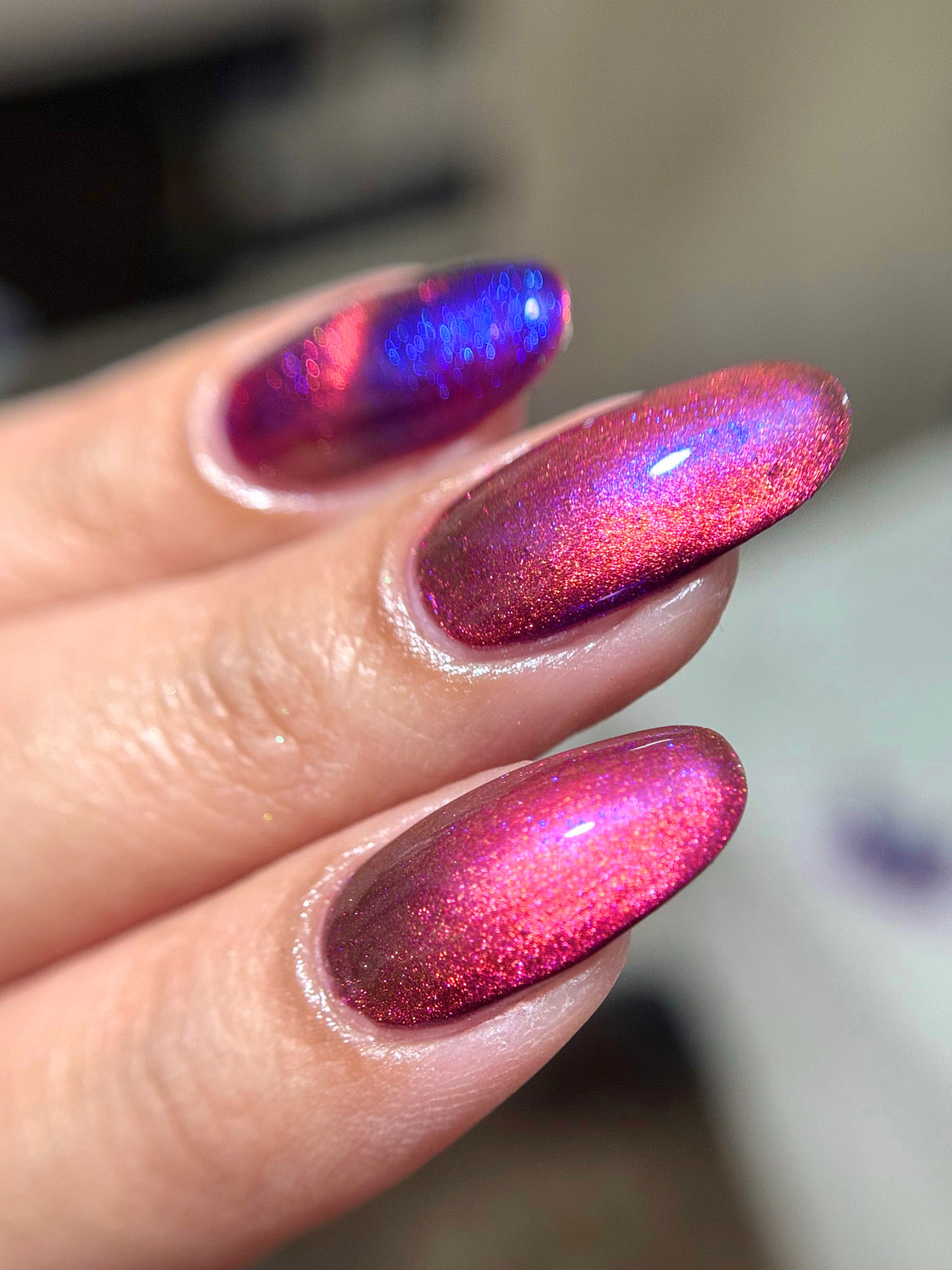 Description: Red/pink/gold magnetic with red and blue shimmer in background.