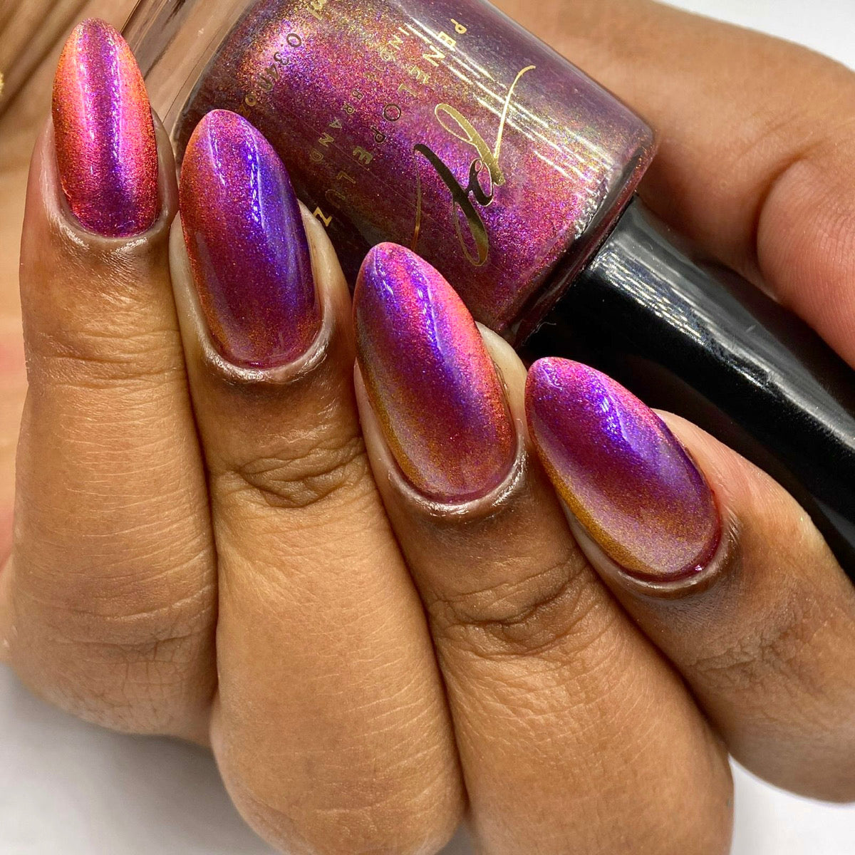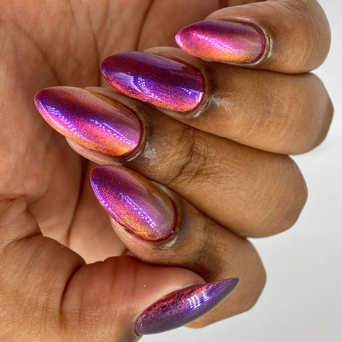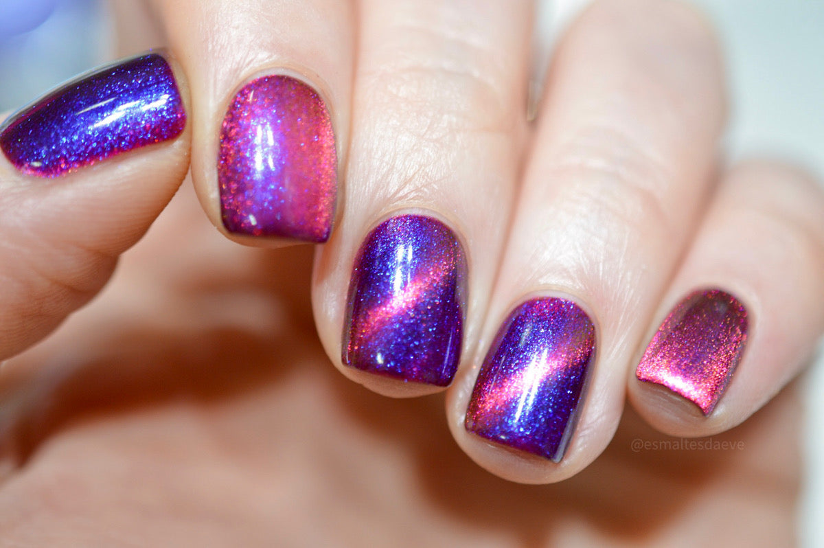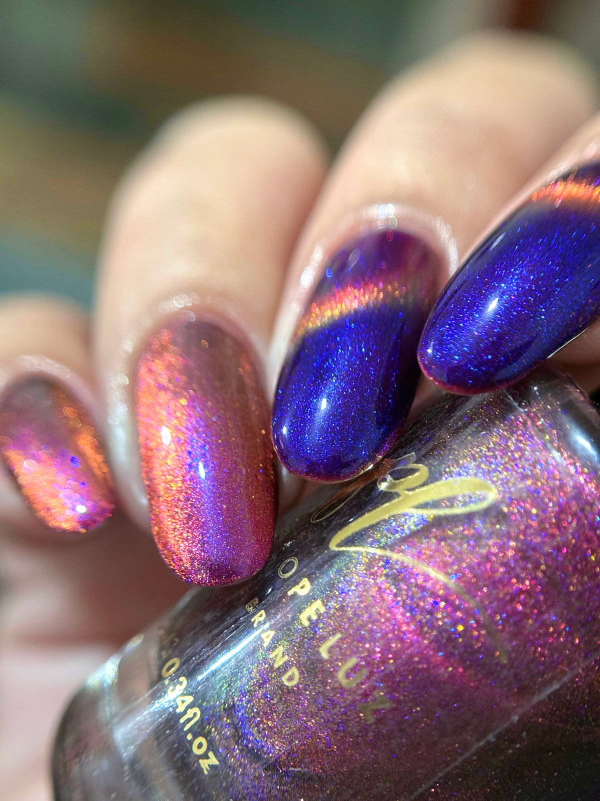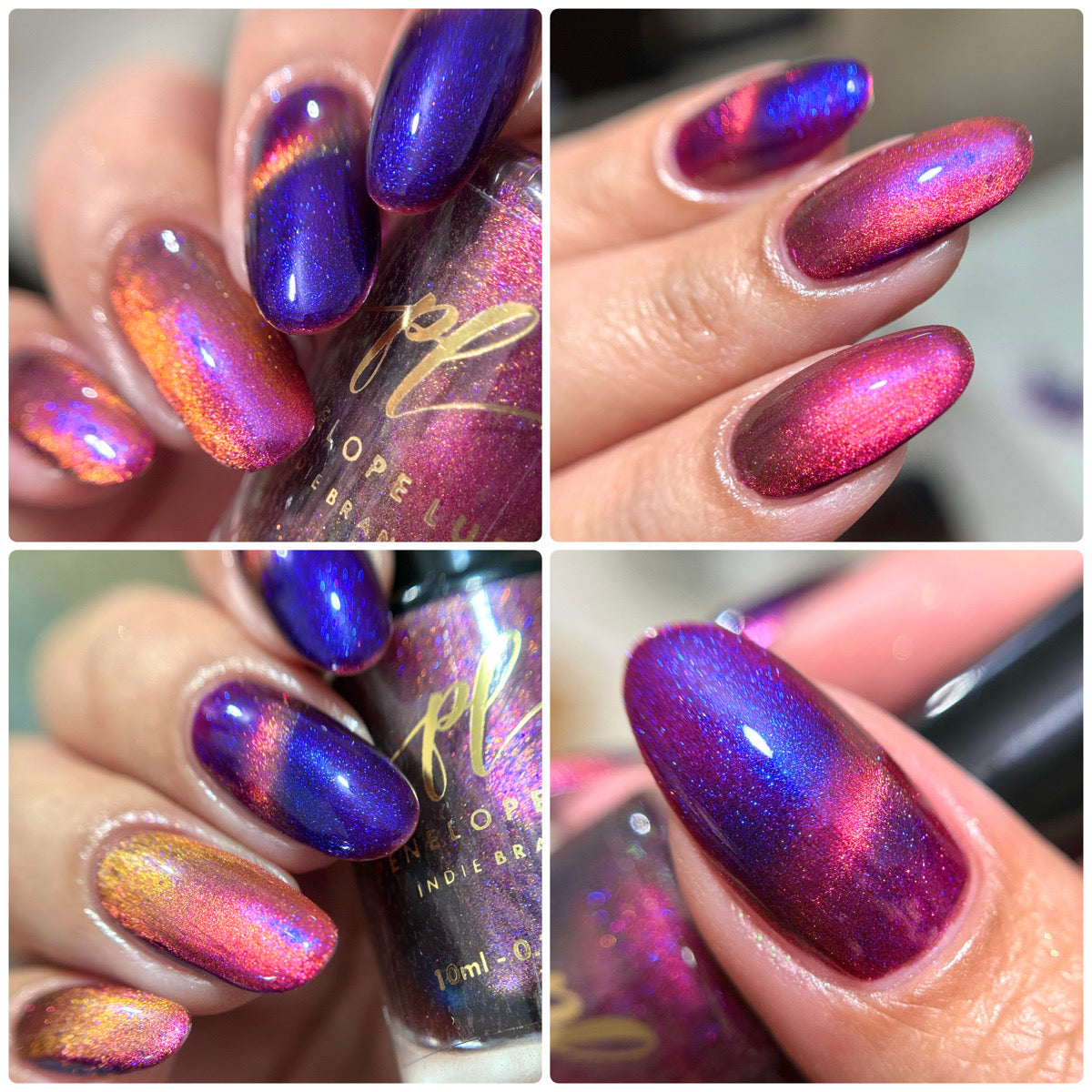 Description: Red/pink/gold magnetic with red and blue shimmer in background.