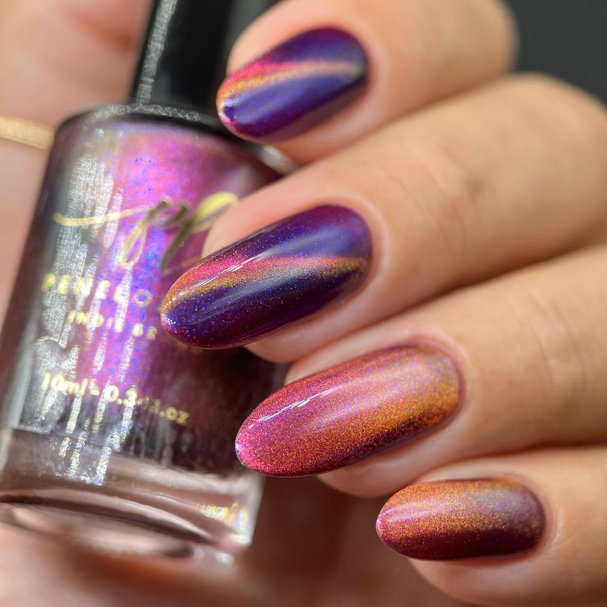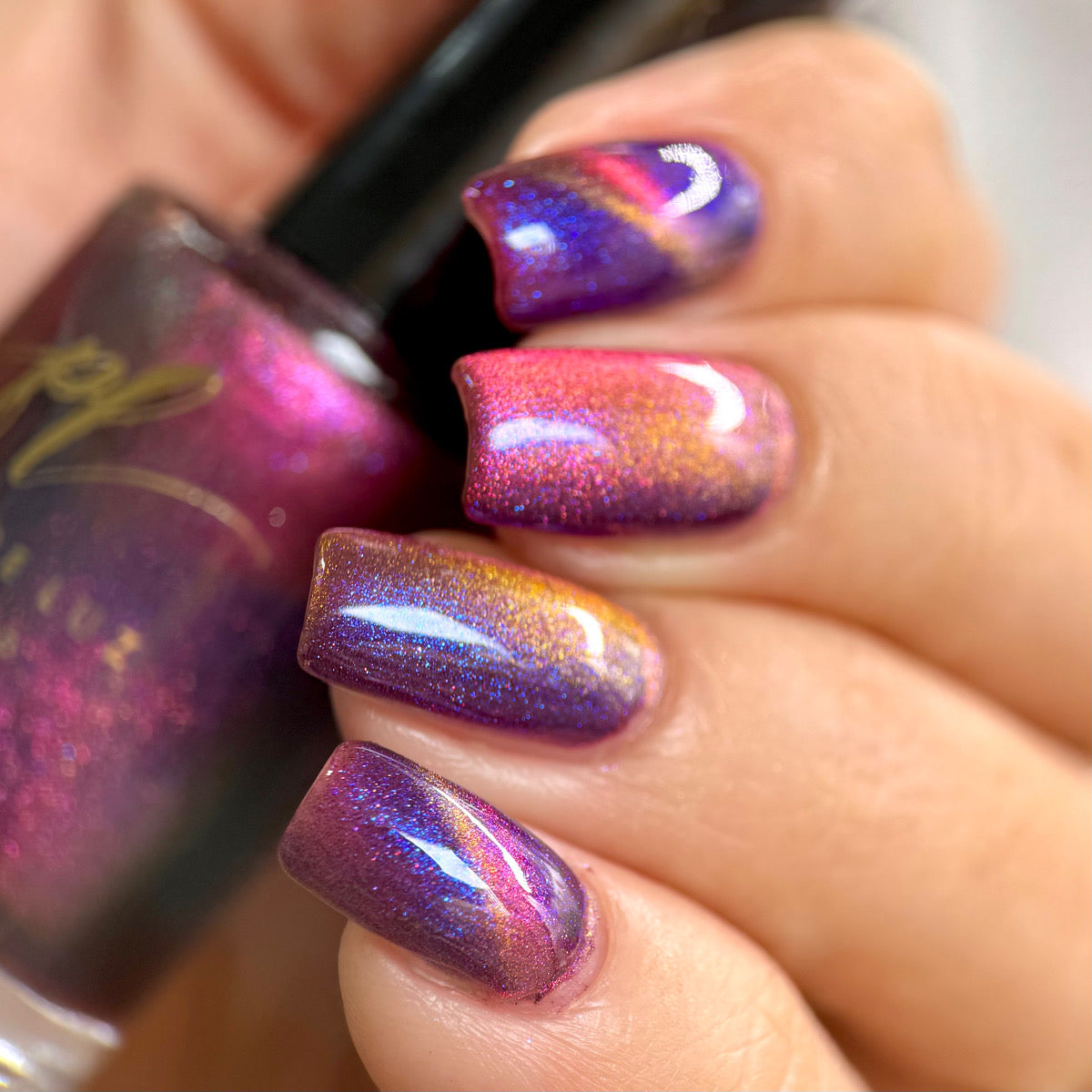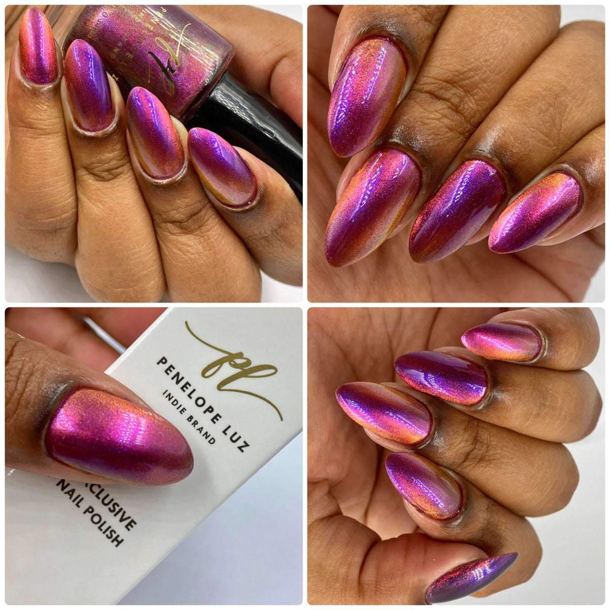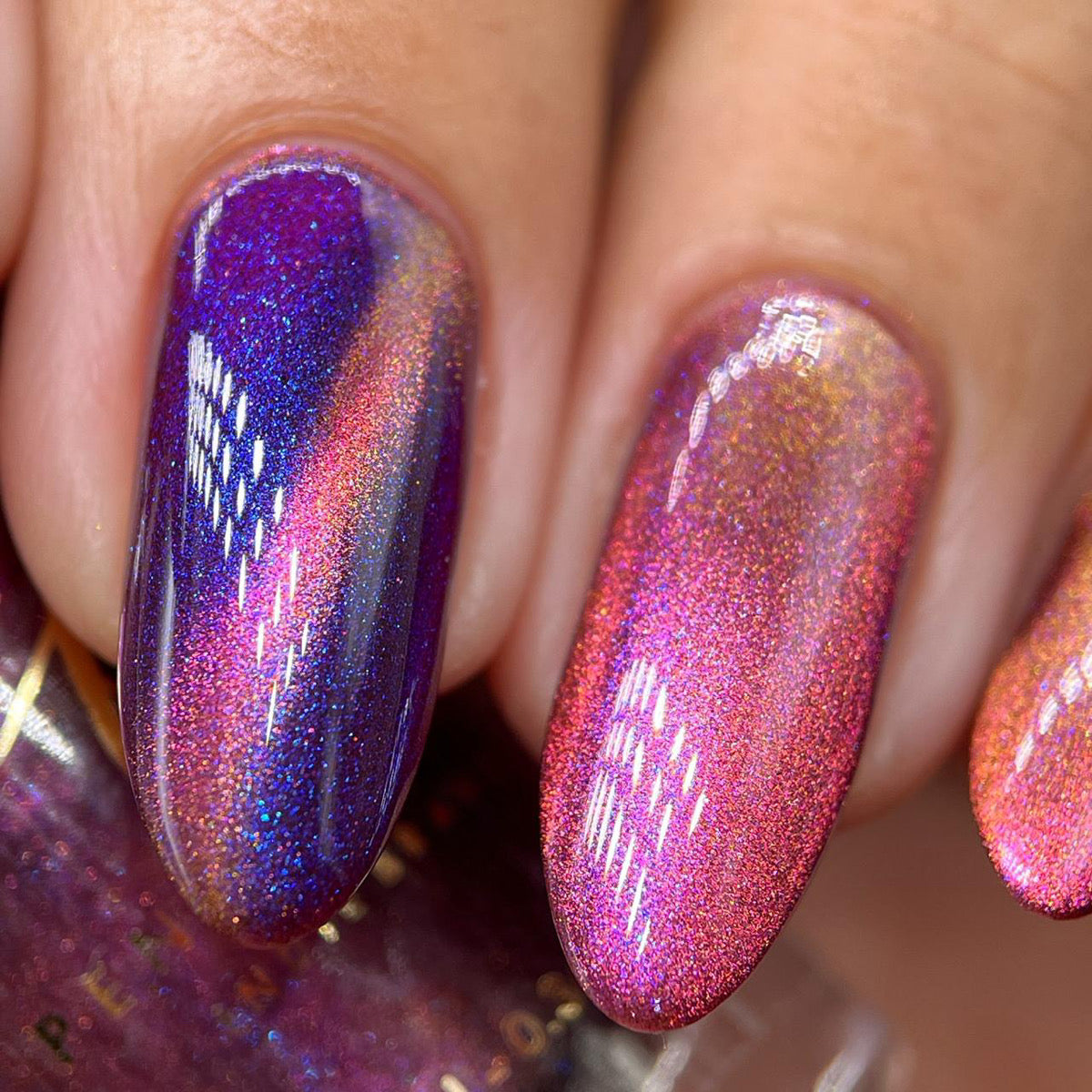 Description: Red/pink/gold magnetic with red and blue shimmer in background.