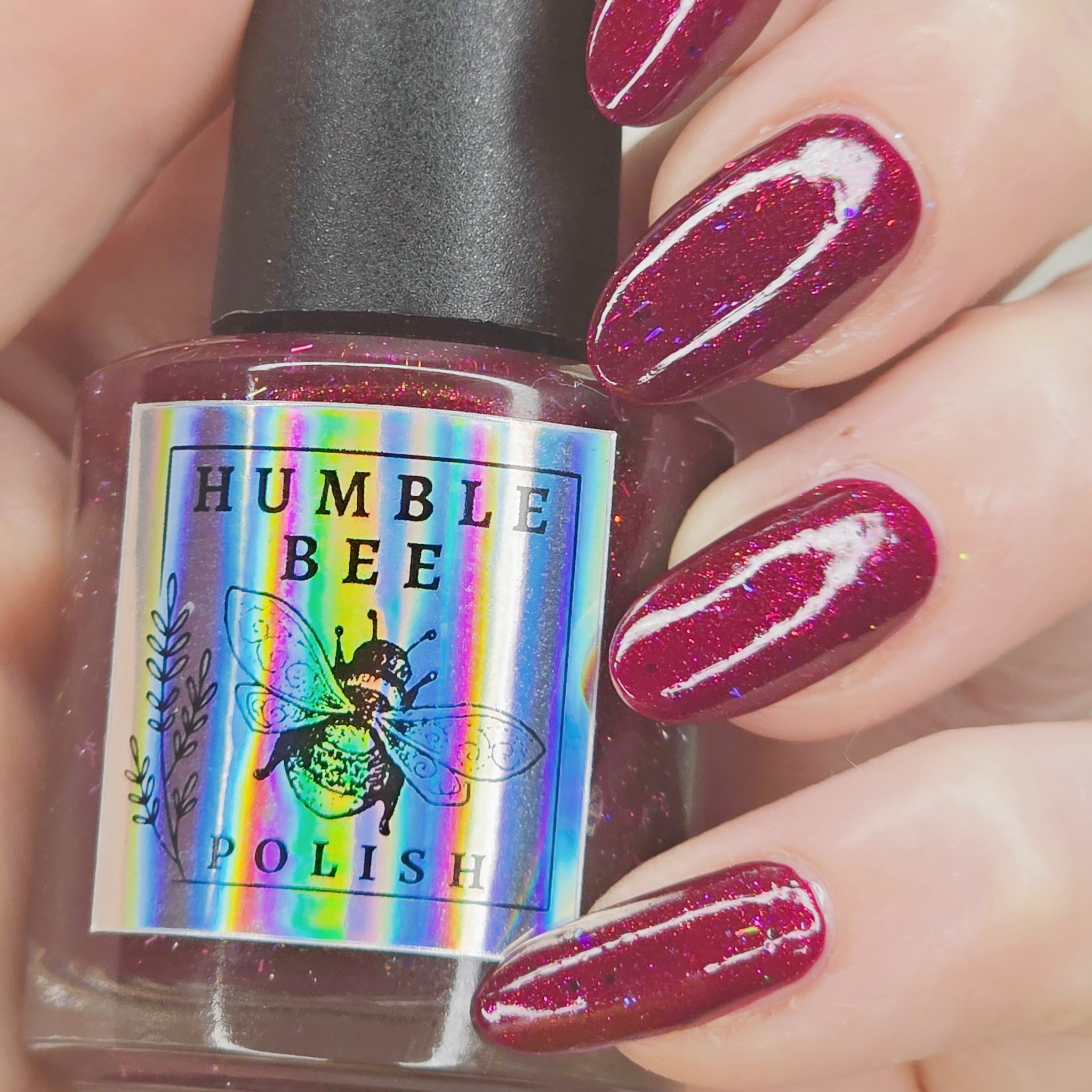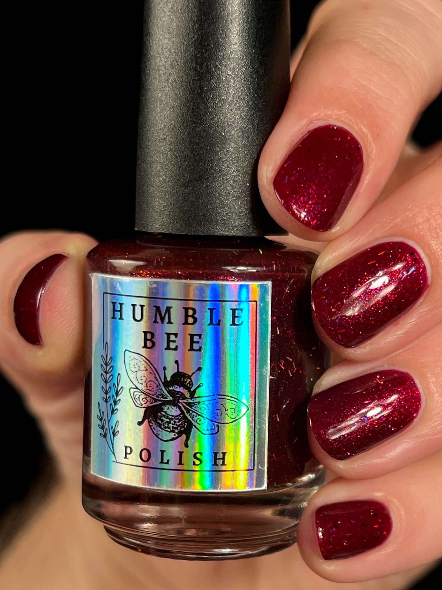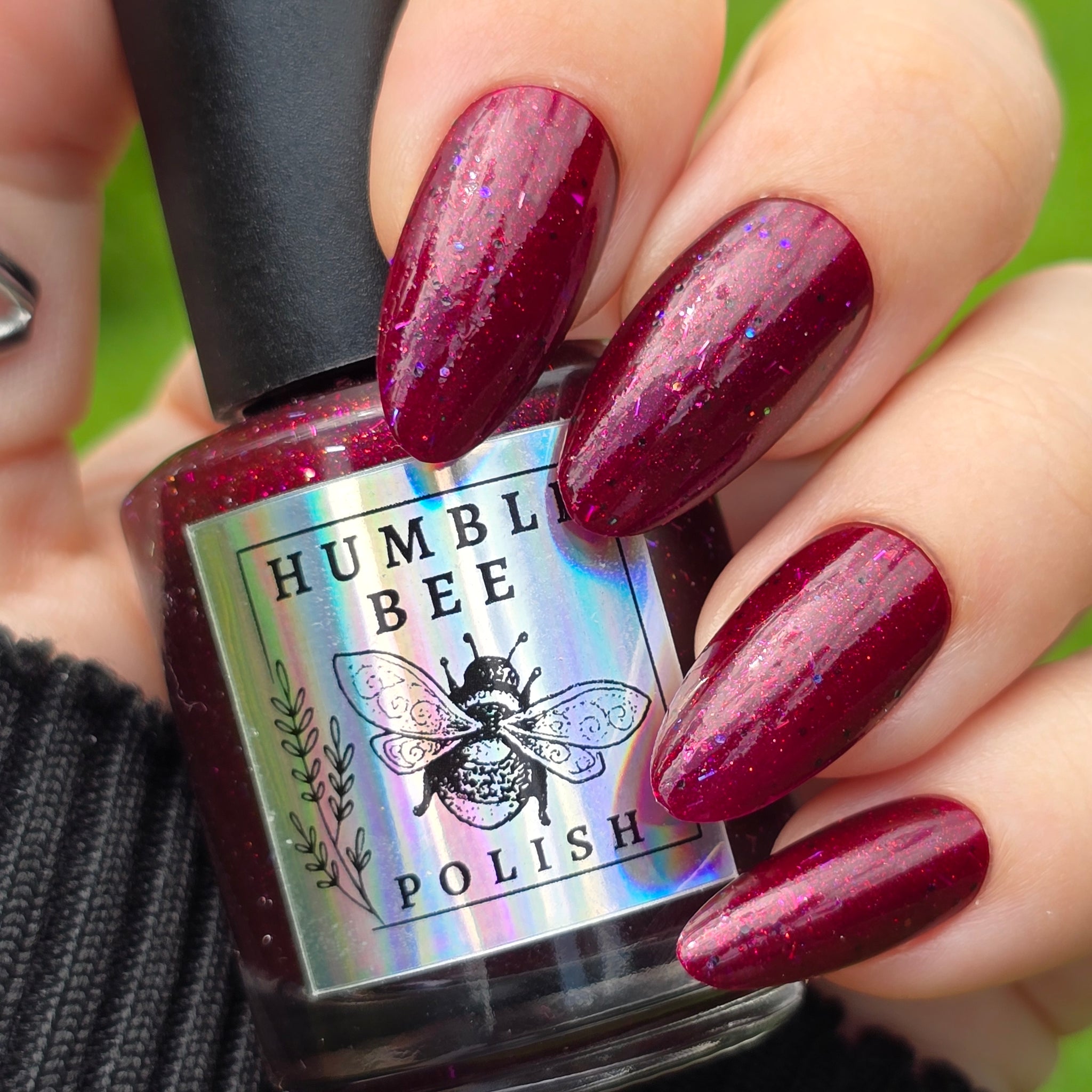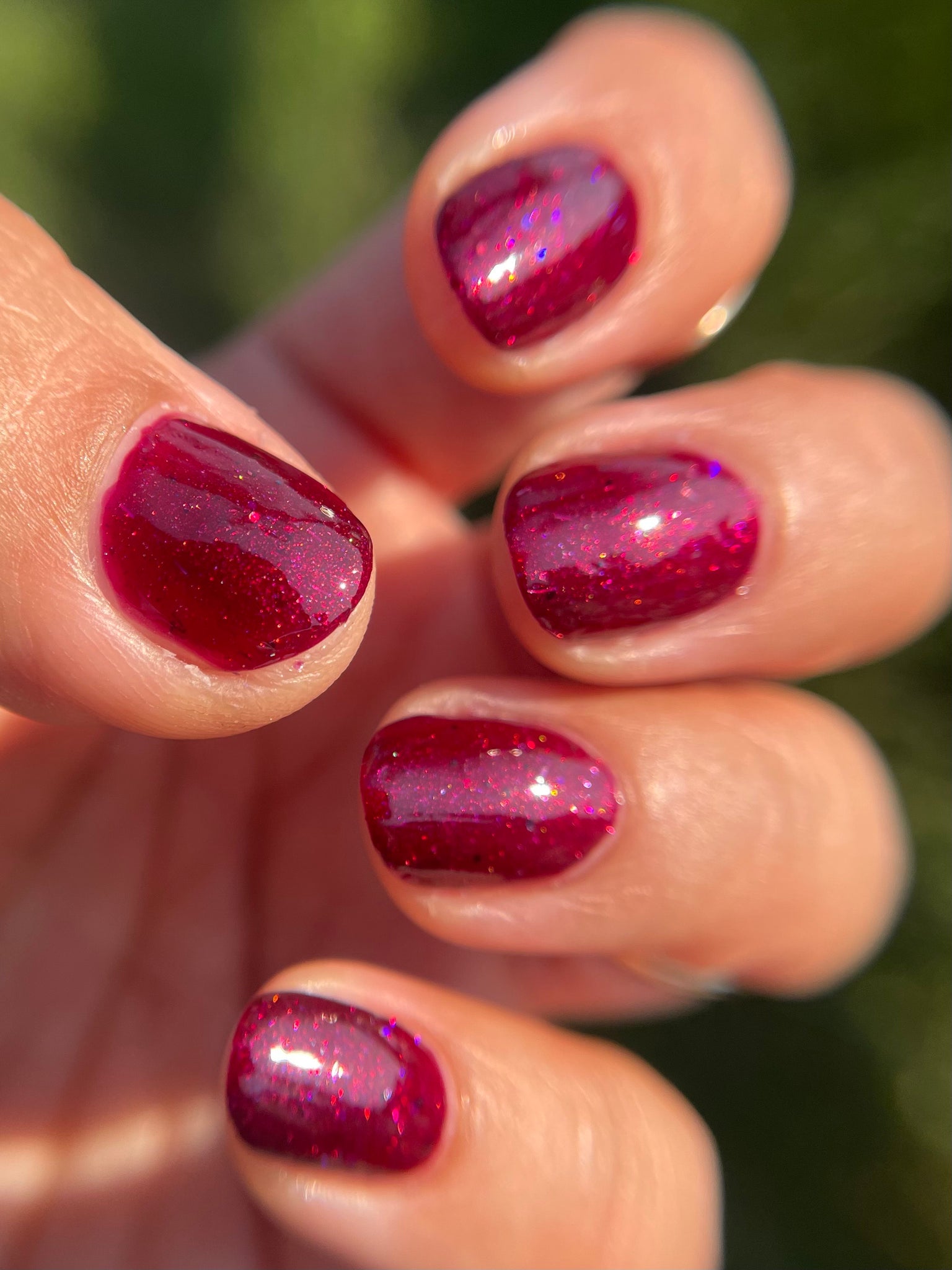 Description: Wichita is a deepened cranberry/burgundy based polish with a mix of micro glitters, bar glitters, aurora pigments and shimmers.