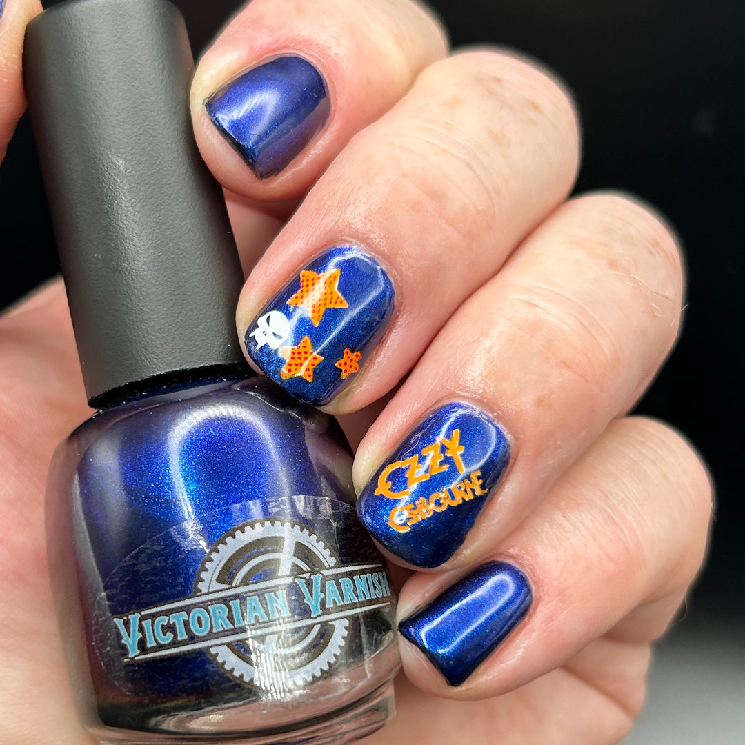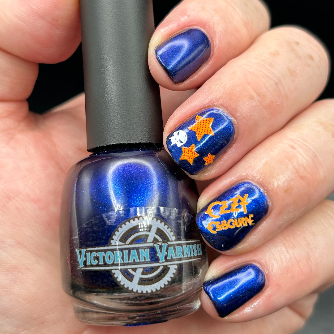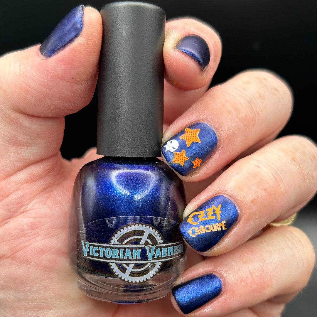 Inspiration: VV was inspired by the cover of an Ozzy Ozborne Album “Bark at the Moon” provided from our swatcher Nathan @myguynails