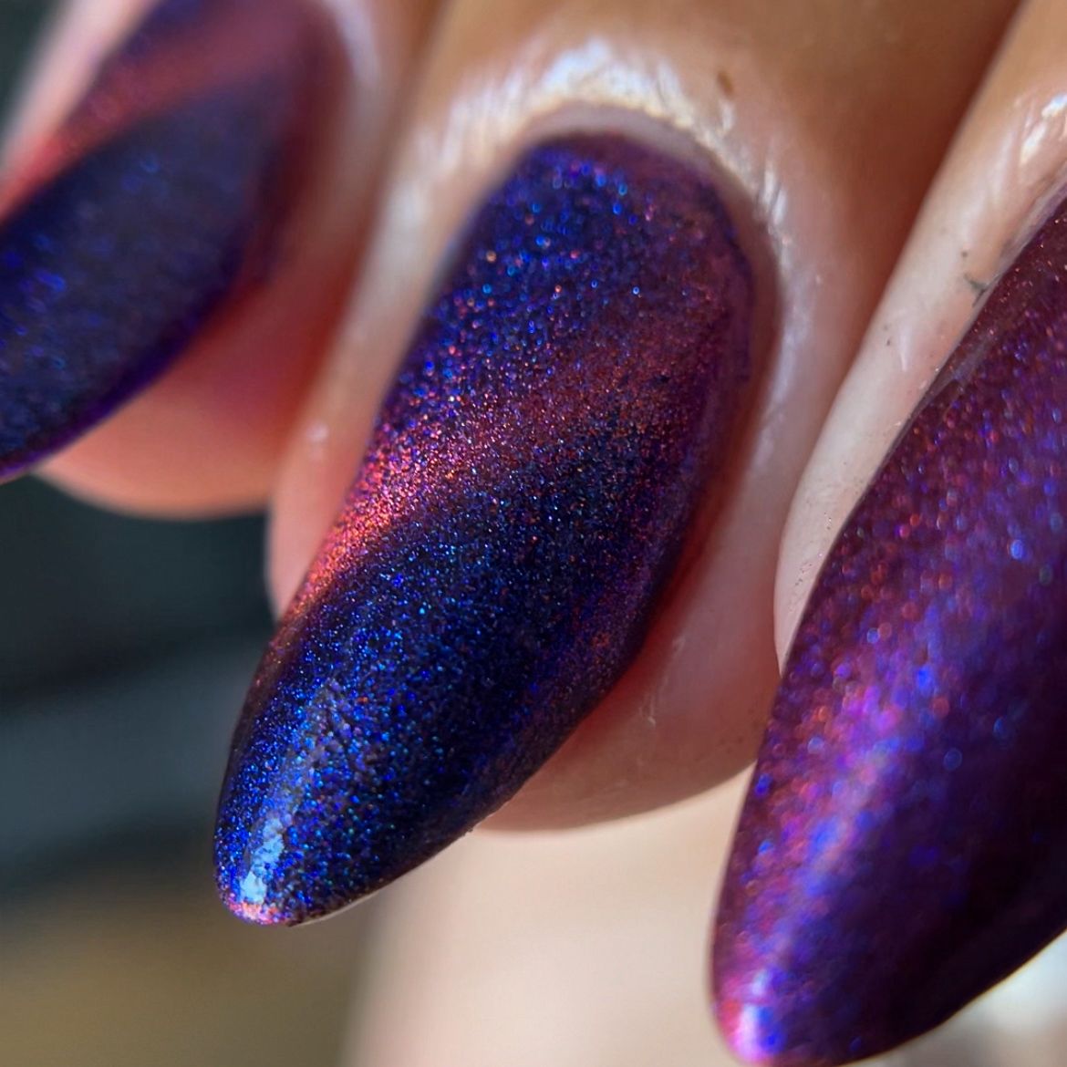 Description: Tales Of Othertime is a red magnetic enamel with blue shimmer
