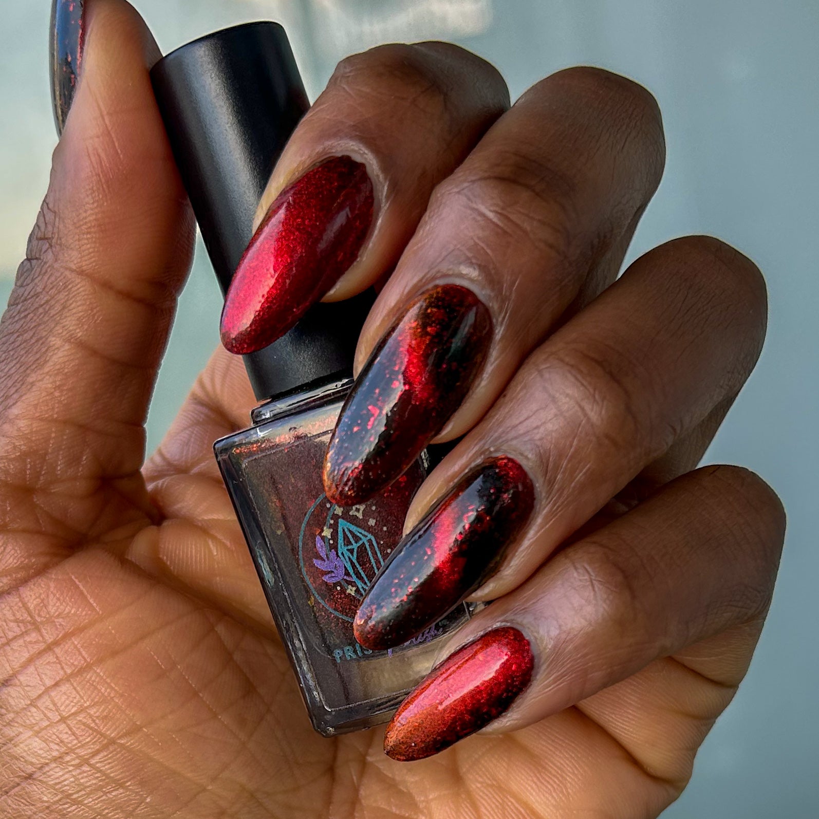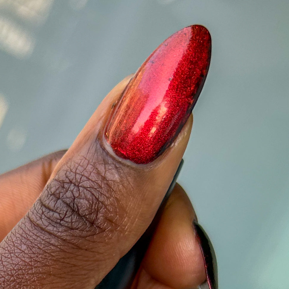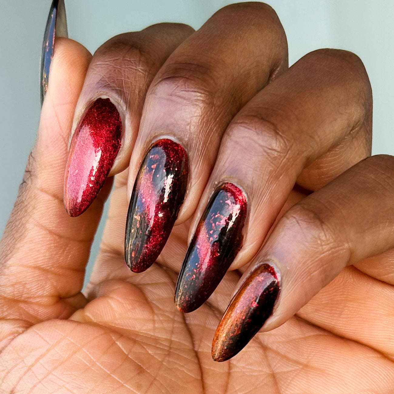 Description: Deepest blood red base filled with red/orange shifting magnetic pigment with marching flakies. Inspired by the cover art of my favourite album: Dust.