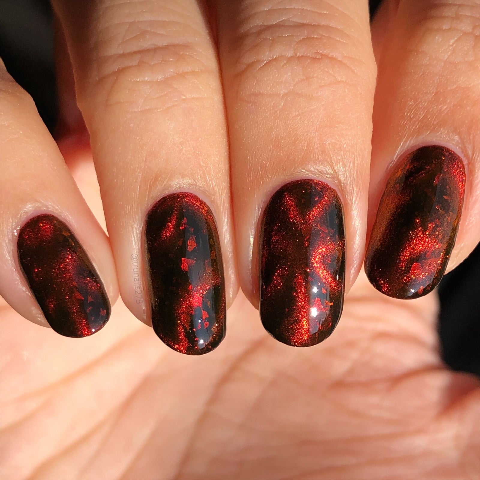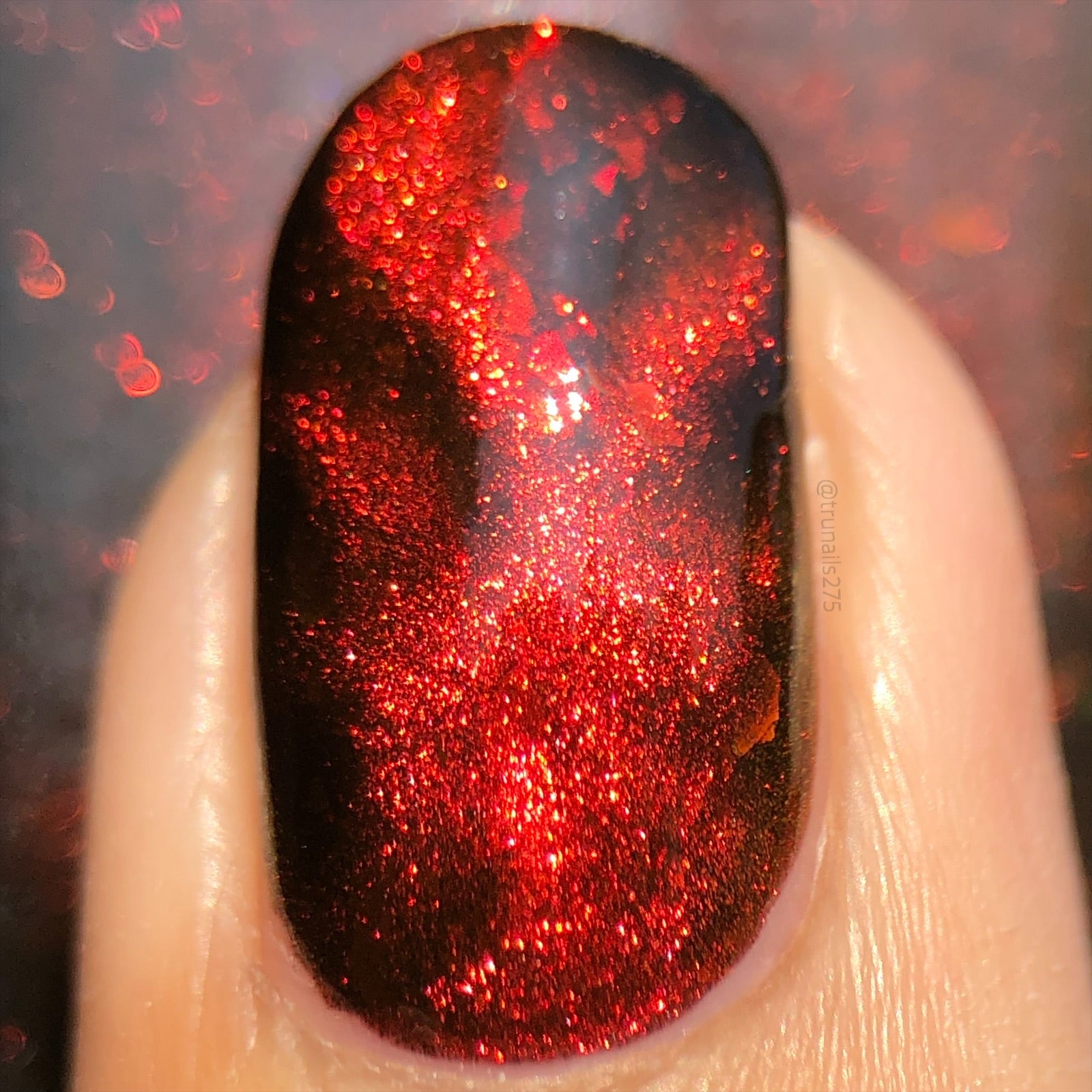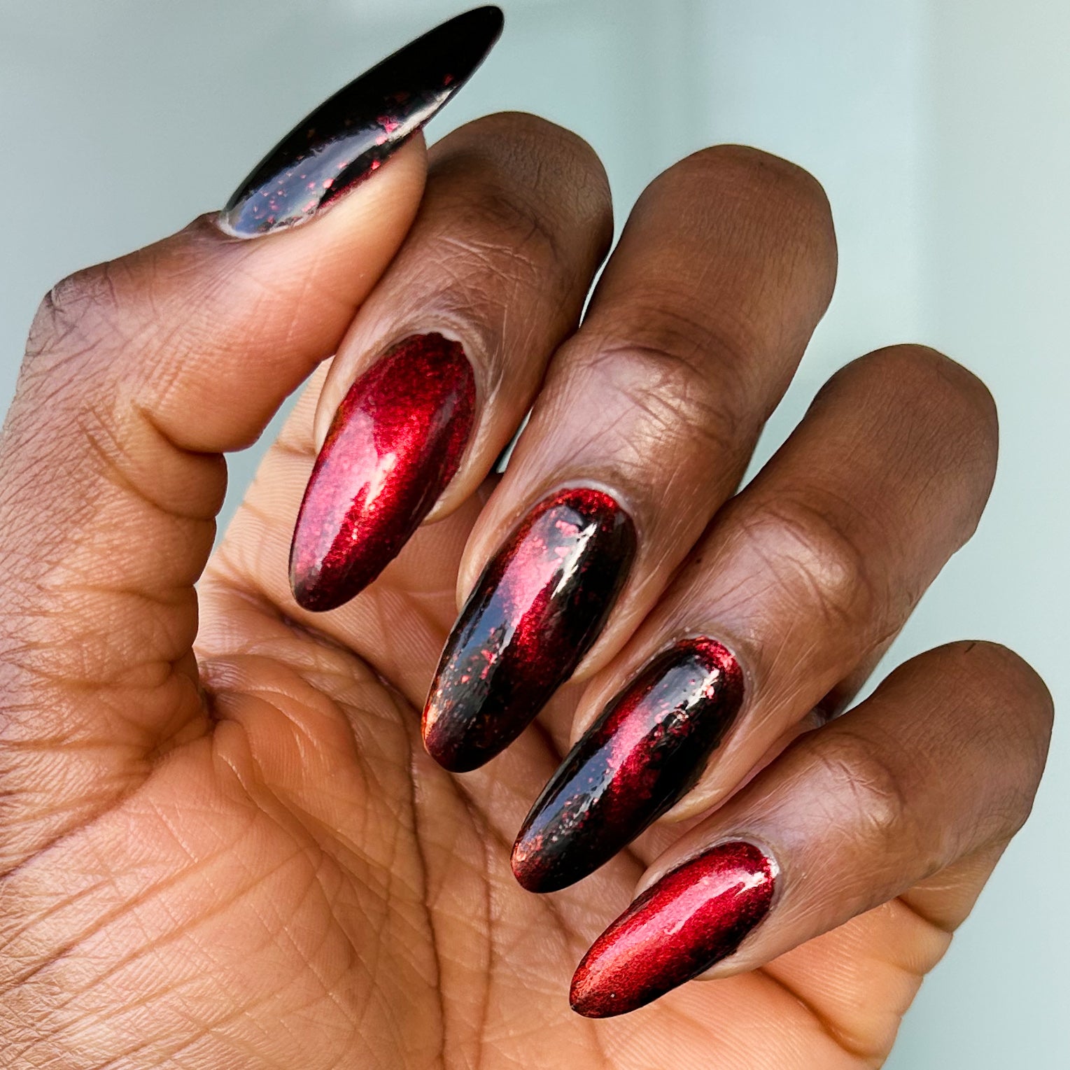 Description: Deepest blood red base filled with red/orange shifting magnetic pigment with marching flakies. Inspired by the cover art of my favourite album: Dust.
