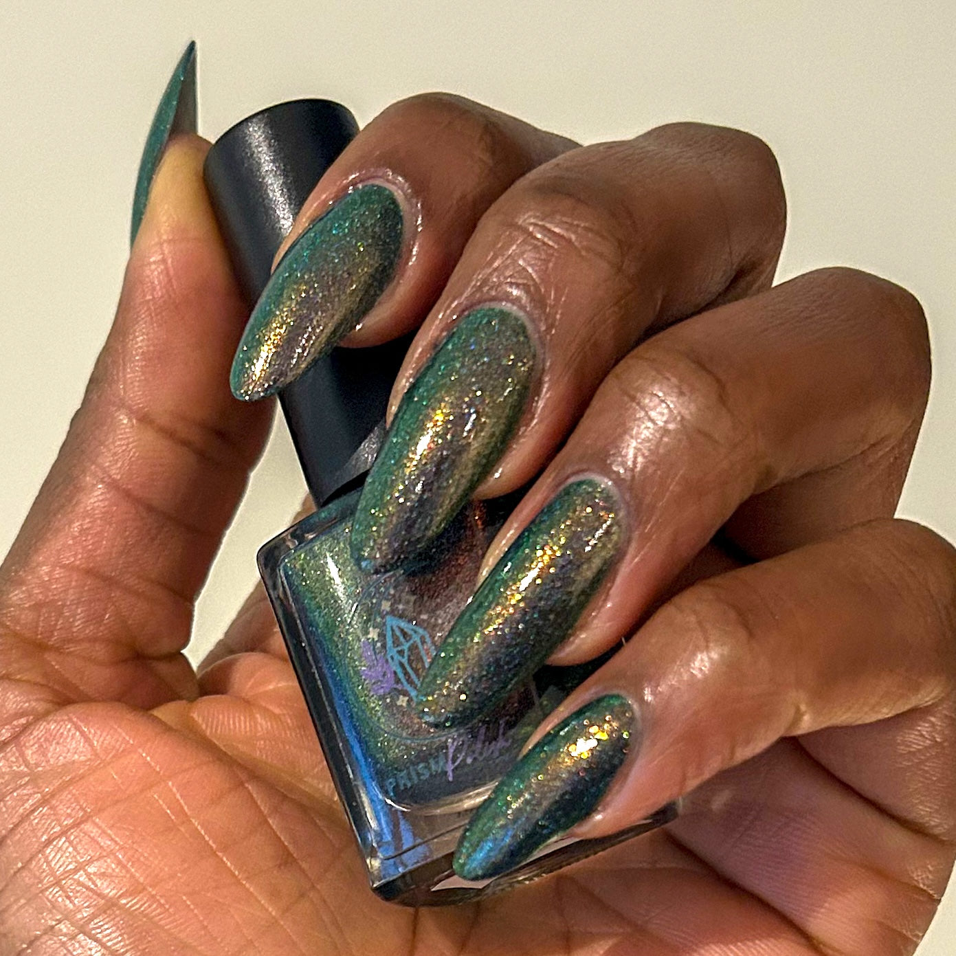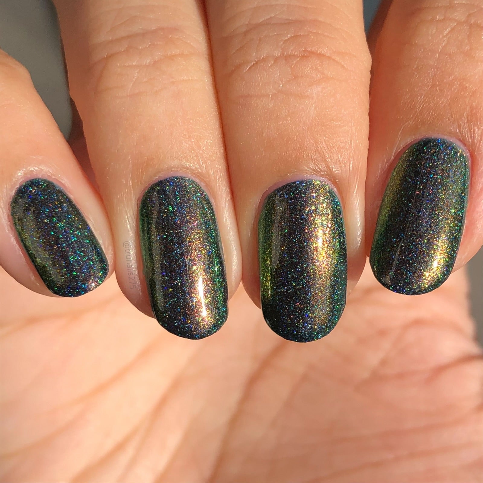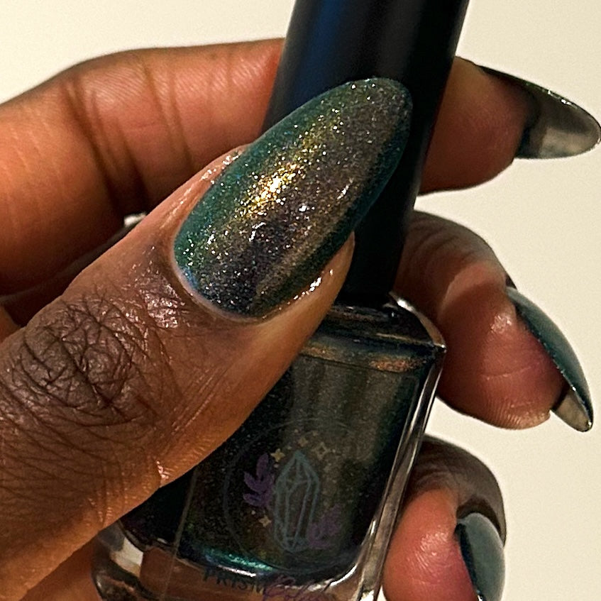 Description: Deep teal large particle scattered holo base filled with red/green/gold shifting sparkly shimmer. Not many people had heard of the French band Gojira until their epic performance as the first metal band to play an Olympics opening ceremony in 2024. If you haven't seen it, look up 'Mea Culpa'!
