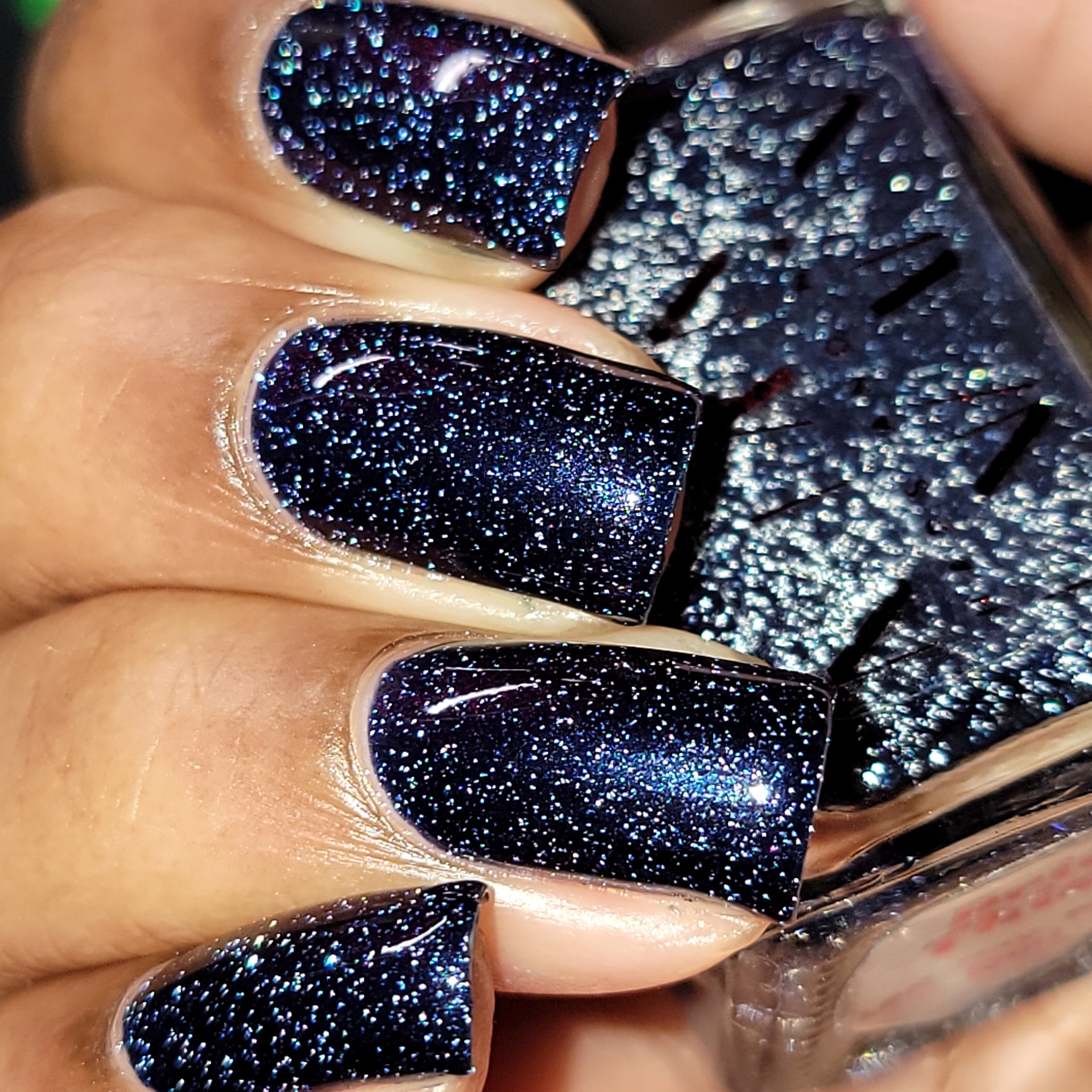 Description: Red/purple/black multichrome with silver reflective glitters