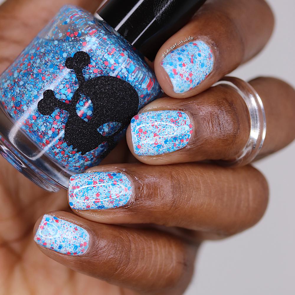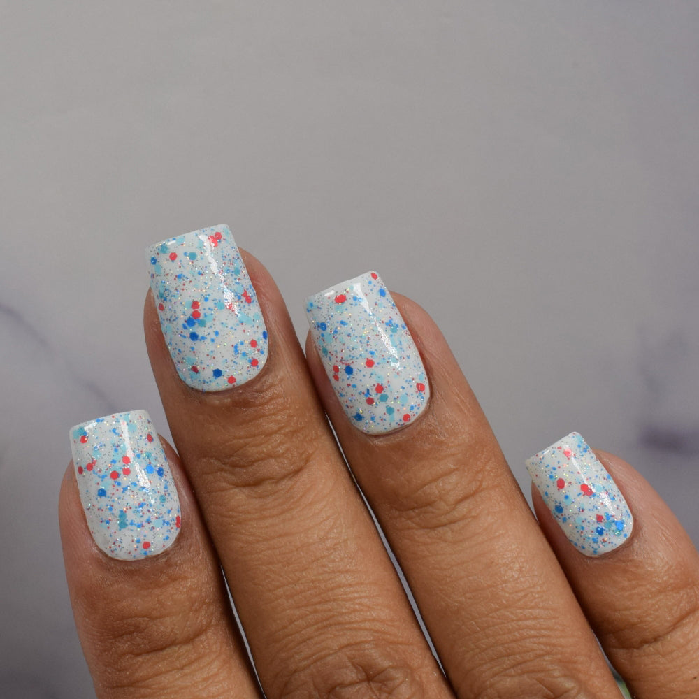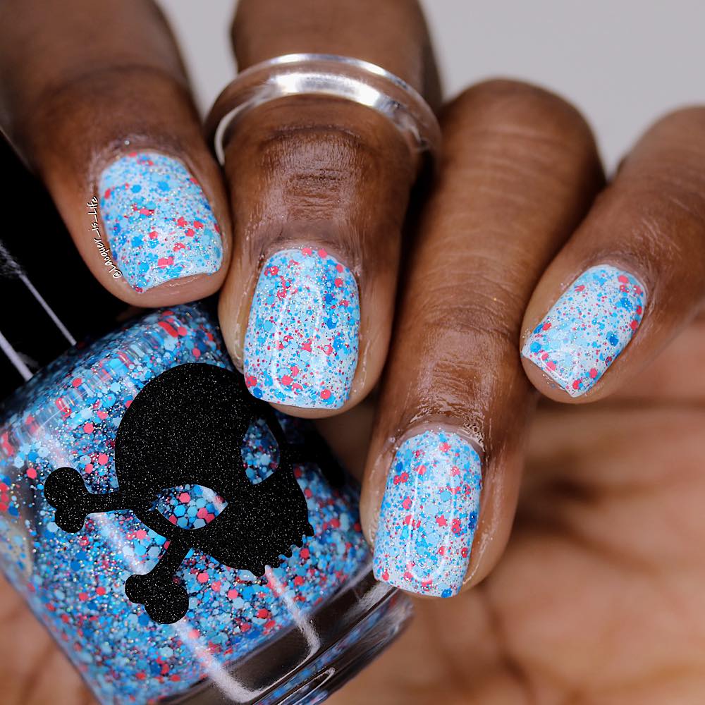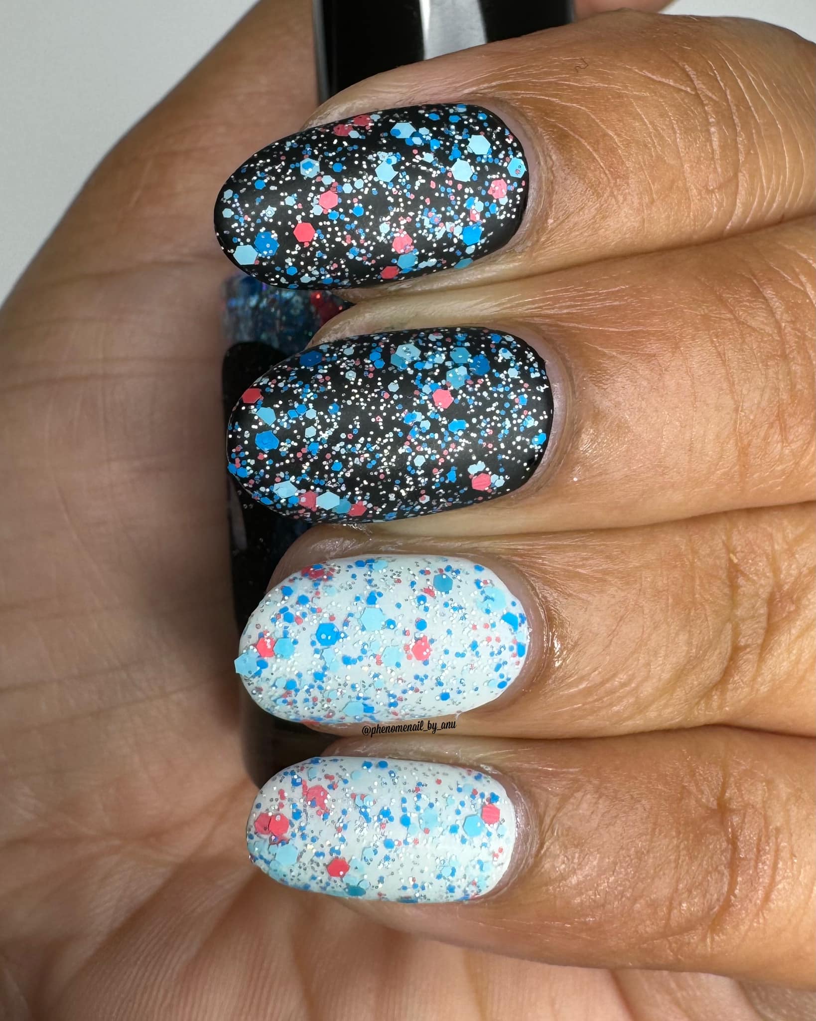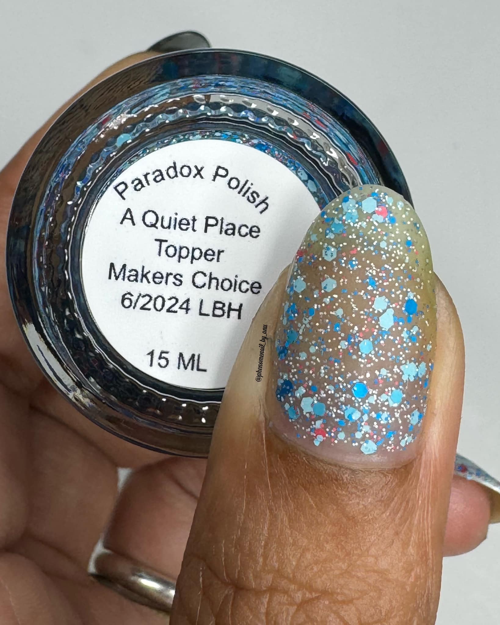 Description: a sparkly topper with neon blue and milky blue hex glitters, watermelon and holo glitters.