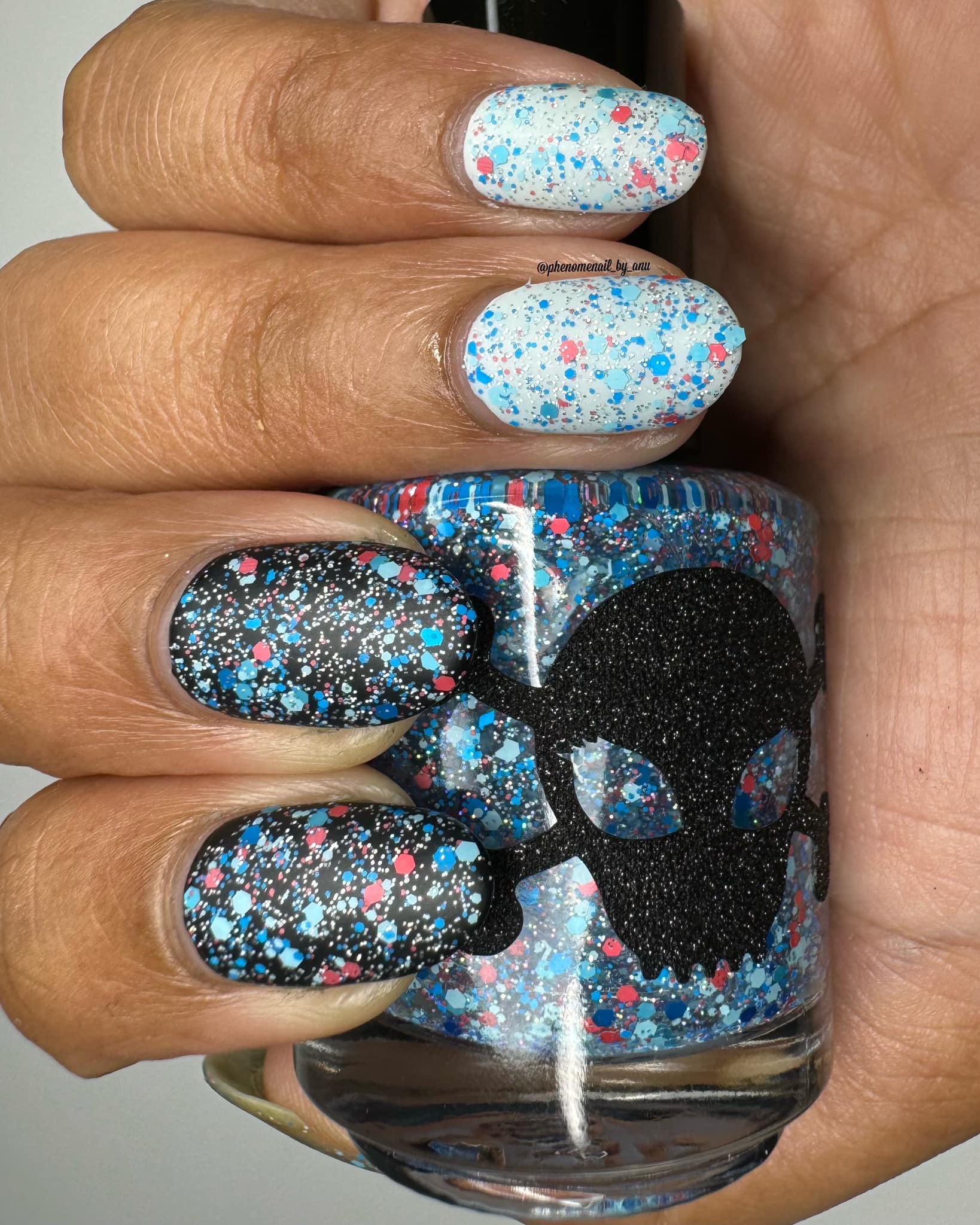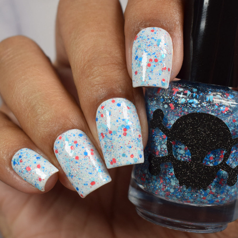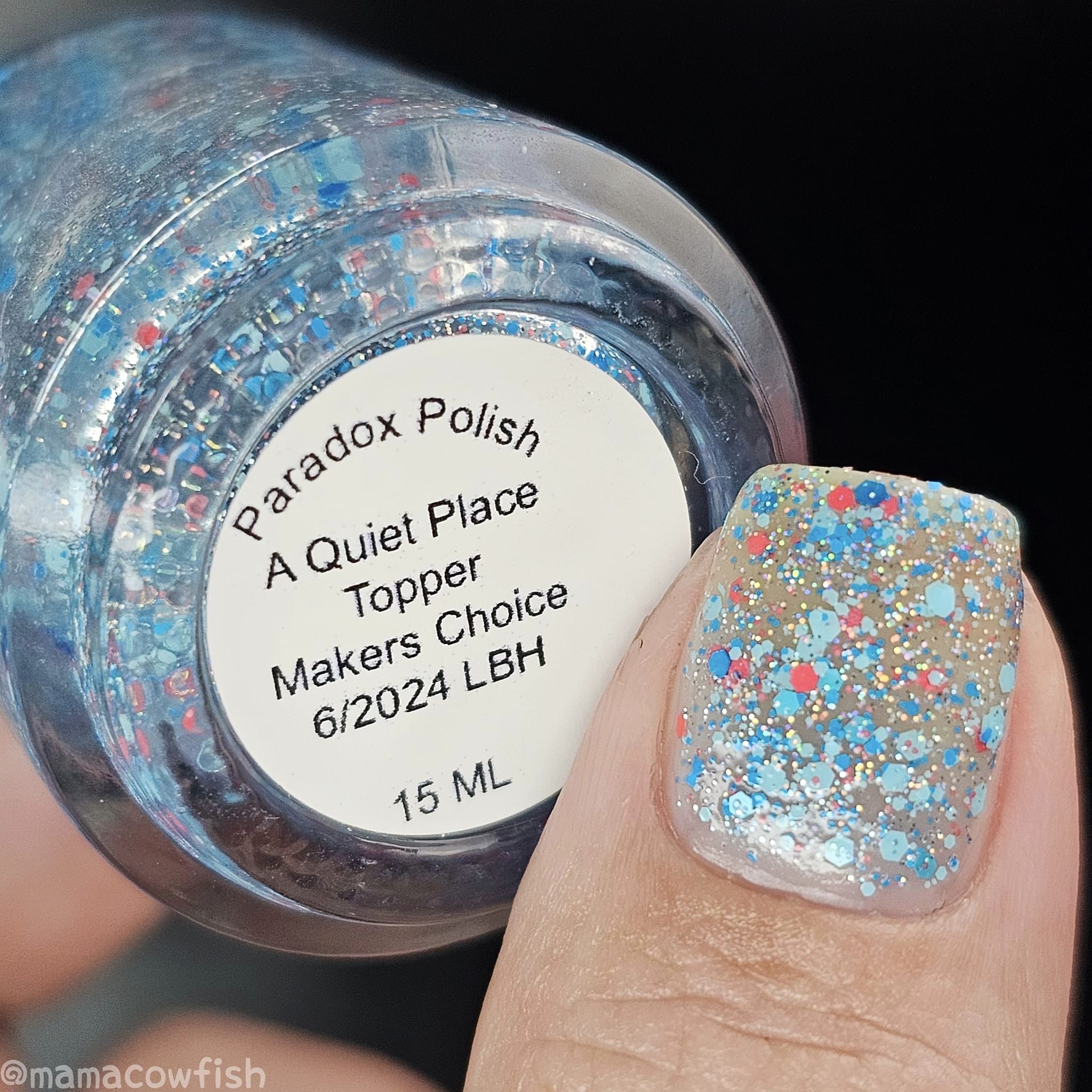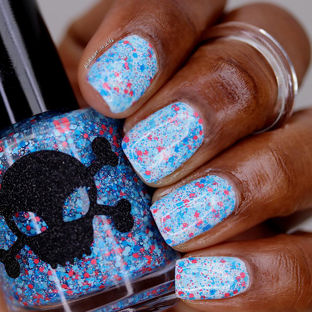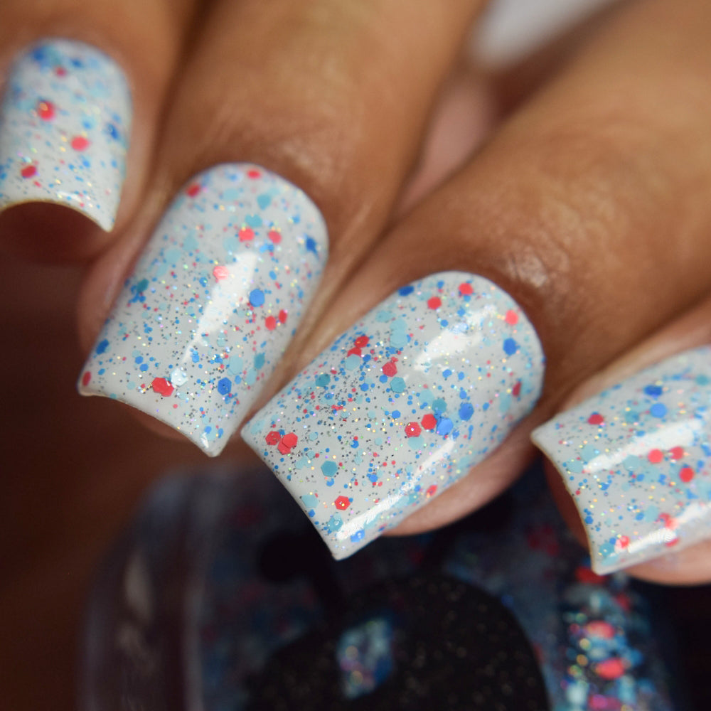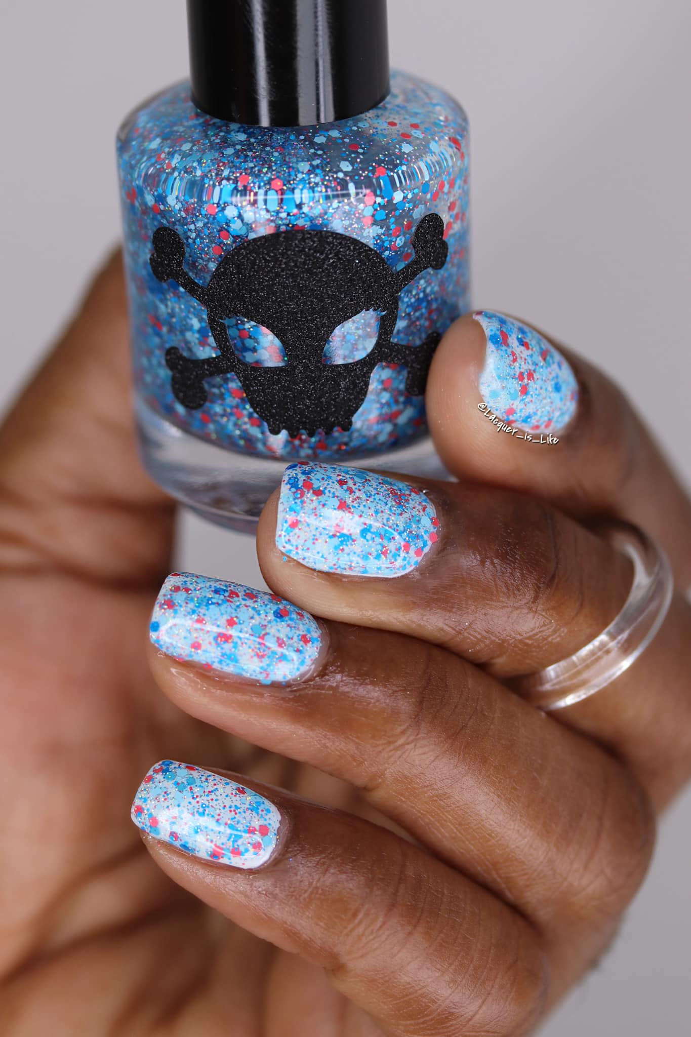Description: a sparkly topper with neon blue and milky blue hex glitters, watermelon and holo glitters.