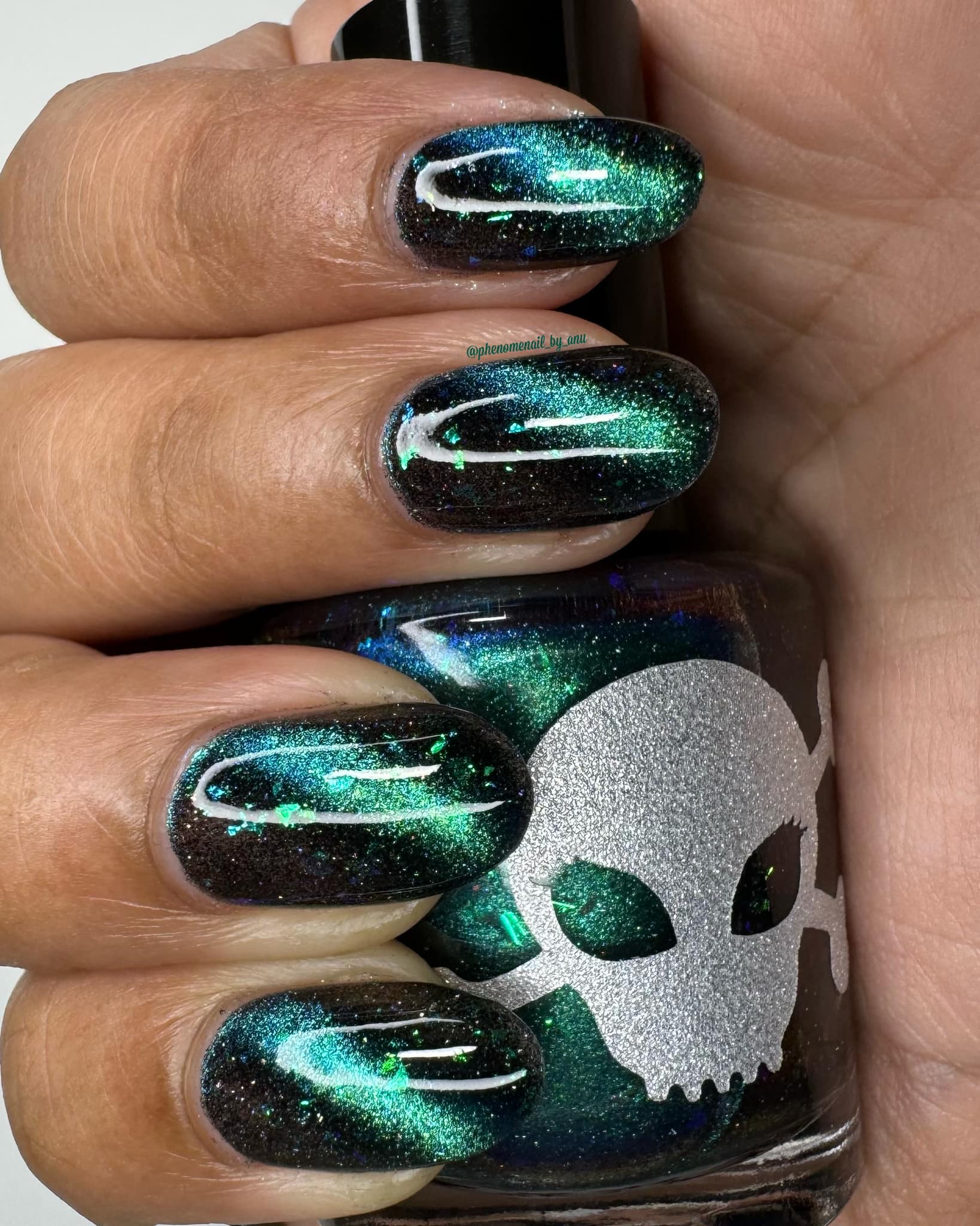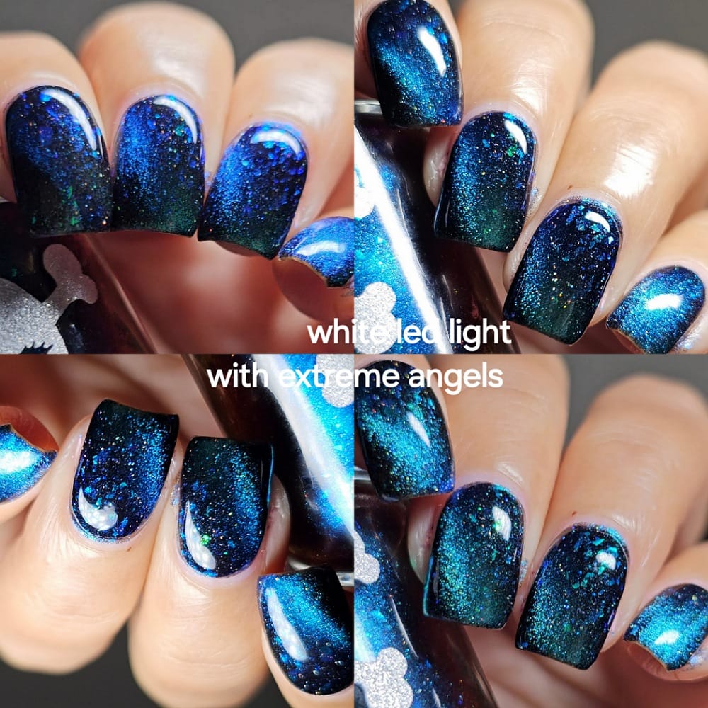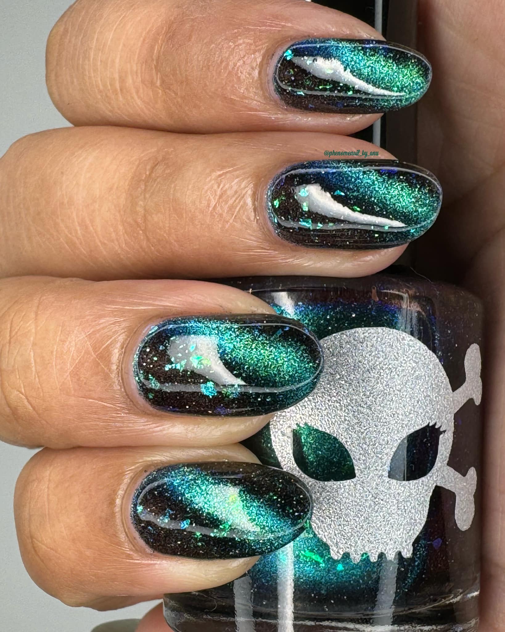 Description: A magnetic that shifts from a forest green, cyan, and teal with scattered holo and iridescent flake.